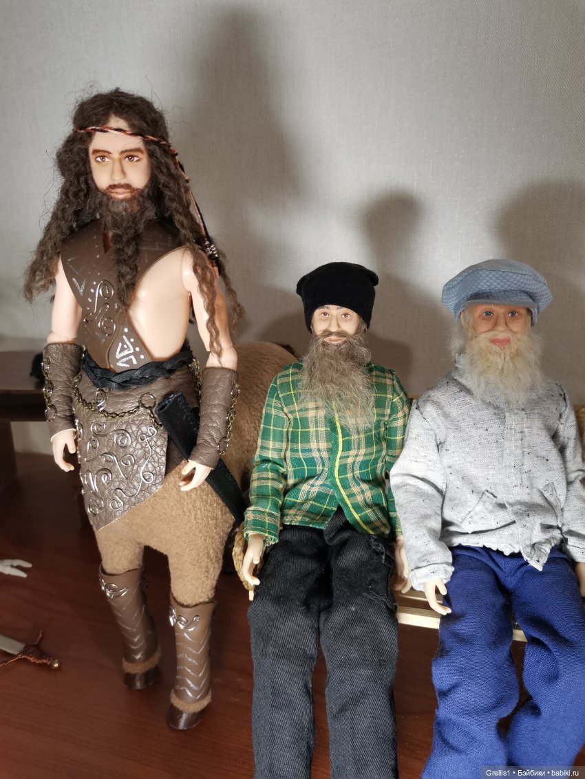 После долгого изучения вот таких персонажей я совсем страх потеряла. И принялась смело намечать разбелённой охрой — мимические складки, и светло-серым — брови и растительность на лице. Хорошо, что лицо у Артурчика приятно матовое, без блеска. И все «тени» и корректирующий бежевый тон прекрасно ложатся. Для работы можно использовать акриловые краски. Но тот же результат получится при использовании гуаши с капелькой клея ПВА. Это доступнее, бюджетнее, и не так страшно, если берётесь за дело впервые. Так что вы тоже можете потренироваться на Артурчиках, Кенах или Алексах.
