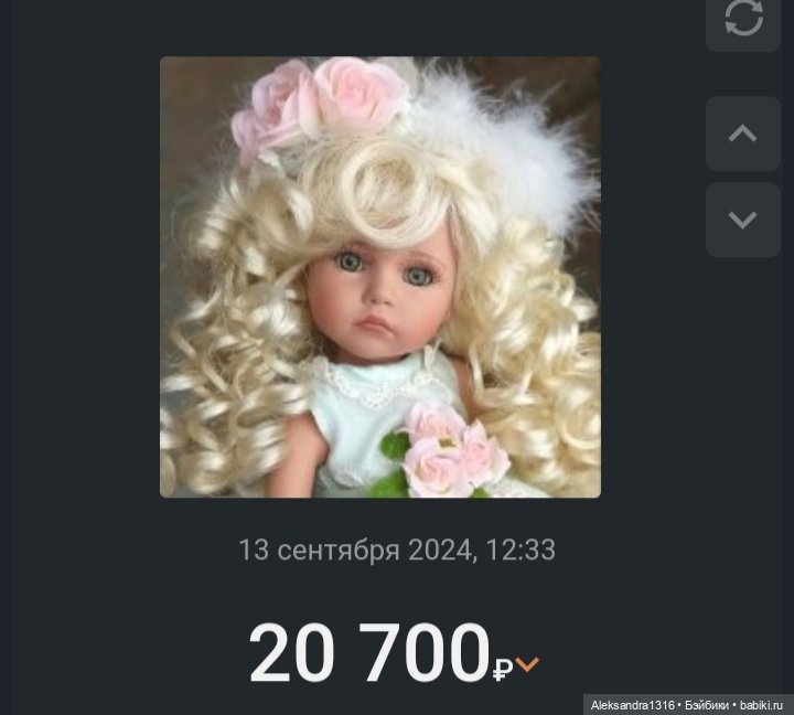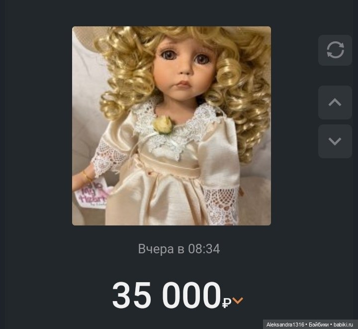 Простите, что вам показала, просто, чтобы вы знали… зачастую я укол продаю дешевле, чем покупала, редко дороже, если рыночная цена выросла только… если вы купили эту куколку за такую цену, то вас надули и так прилично… но продать не сможете за нее, у вас даже никто в избранное не забрал… цена космическая…