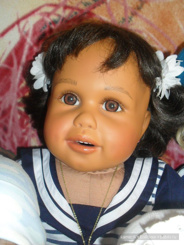 Девочка очень шкодливая. Когда фотографировала ее на улице, то люди оборачивались.Одна женщина чуть шею не свернула. Я ей сказала, что это кукла… Дама засмеялась, а один мальчик вообще испугался))) На вопрос " Чего ты испугался*" он ответил, что девочки:)) Не буду больше я с куклами на улицу ходить… весь двор перепугаю:))