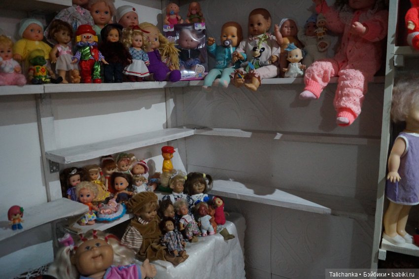 Старшая дочка выросла и те куклы, что были куплены ей, перешли ко мне средняя дочь то же не всеми куклами играет, то же часть перешли мне а куда же их рассадить, когда их количество растёт в геометрической прогрессии?! Раньше мы жили в старом доме — трое детей и мы с мужем, а комнат всего две! Мы в зале с малышами и куклами которые оккупировали все горизонтальные поверхностиЗатем переезд в новый, большой дом с подвалом на три комнатВот оно! Вот оно счастье!!! Одну комнатку мы с куклами сразу присмотрели, но до счастливого выхода кукол в свет пришлось подождать пару лет. А затем началась работа. Спасибо мужу моему, он у меня вообще молодец конечно! Что касается поддержки в моём кукольном хобби он и поддерживает и помогает. Попросила полки — сделал! Попросила узнать у сотрудников кукол, попросил и принес несколько надо к стати ещё раз напомнить ему может ещё принесет