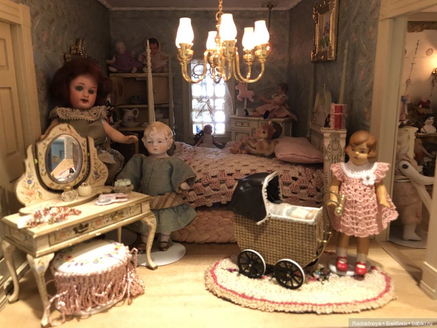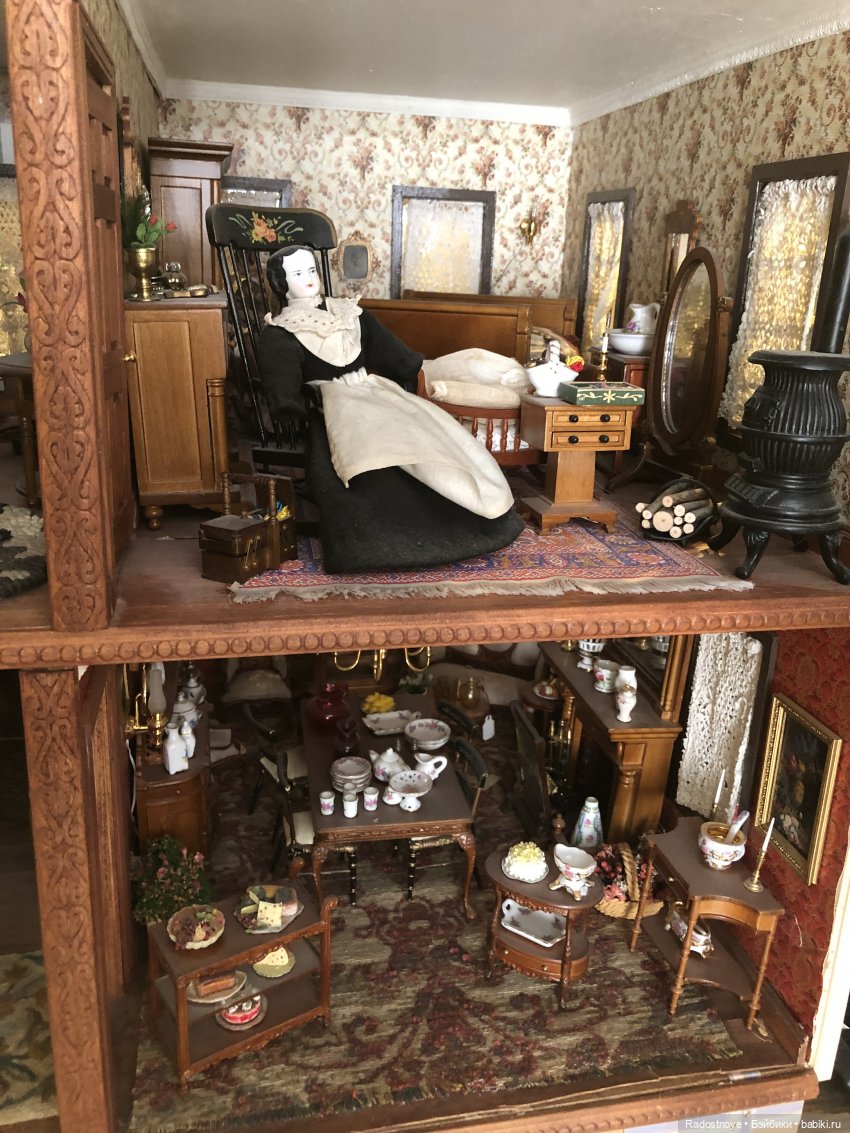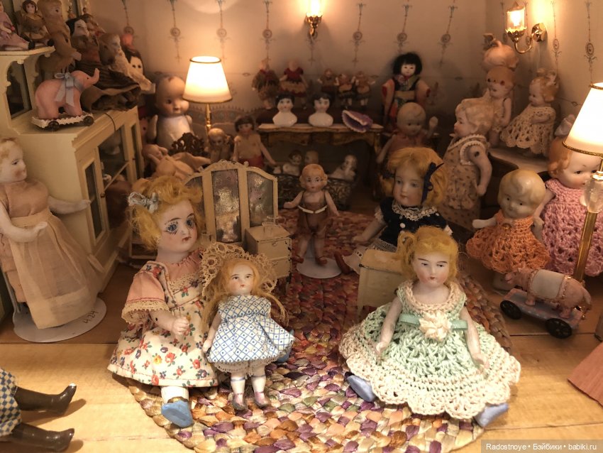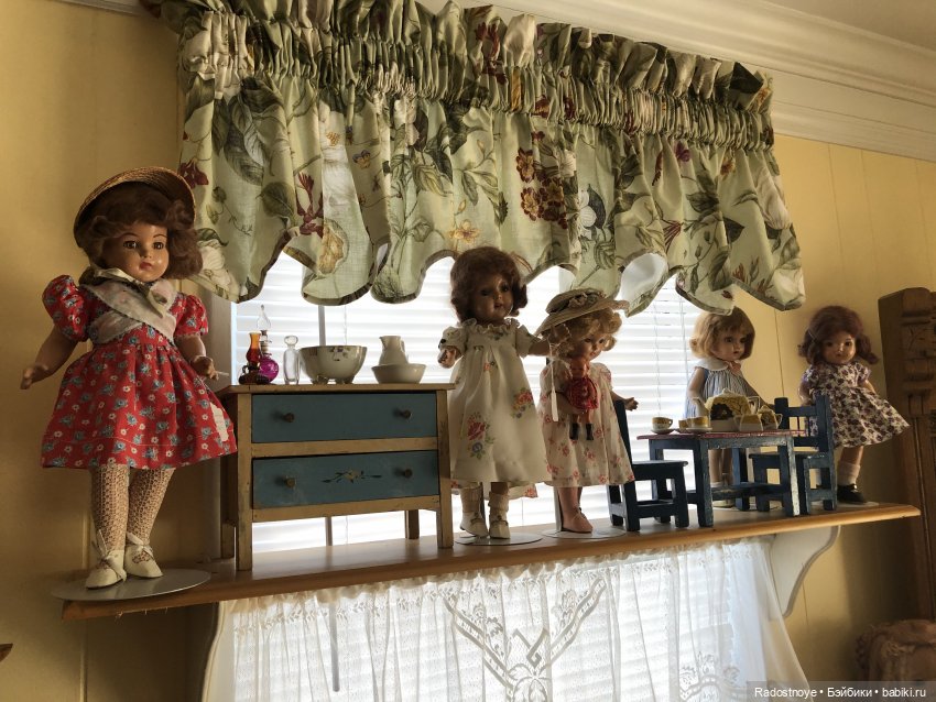 В ее доме много антикварных, коллекционных кукол и разных кукольных домов, которые она сама закончила.