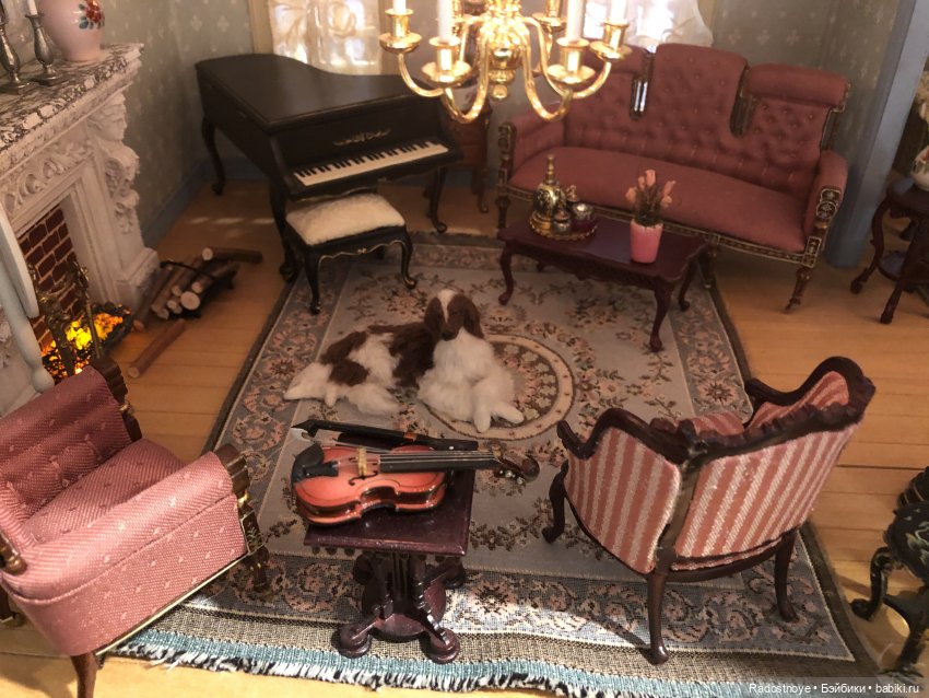 Но больше всего поразили детали: мебель, посуда, светильники, ковры, маленькие жители, четвероногие друзья и кролик в клетке… это счастье какое-то.