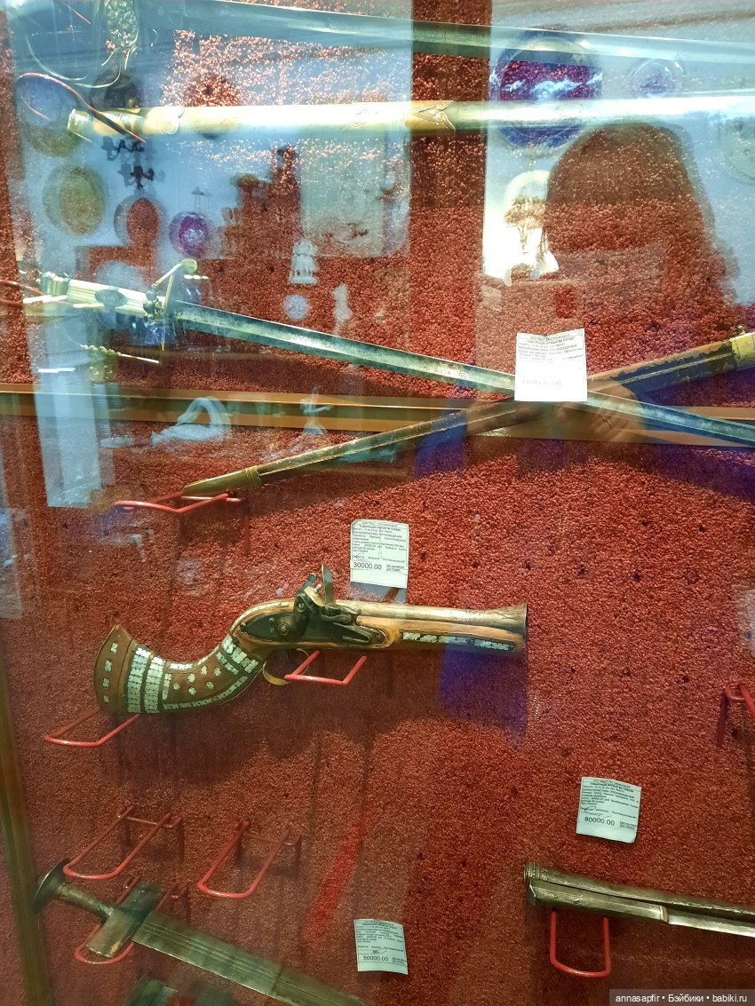 У владельца этого магазина очень хорошая коллекция английского оружия. Сабли всякие, пистоли.