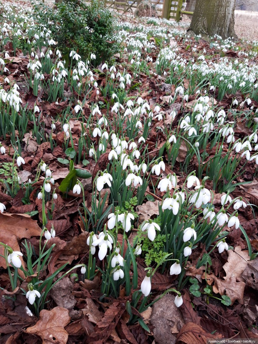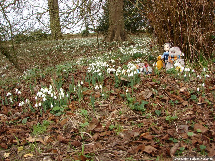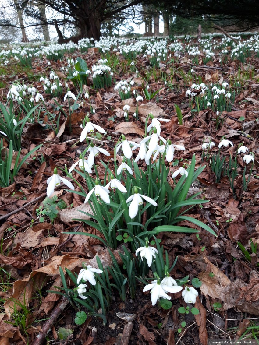 на подснежники. Вокруг поместья, в парках, садах растут миллионы подснежников.