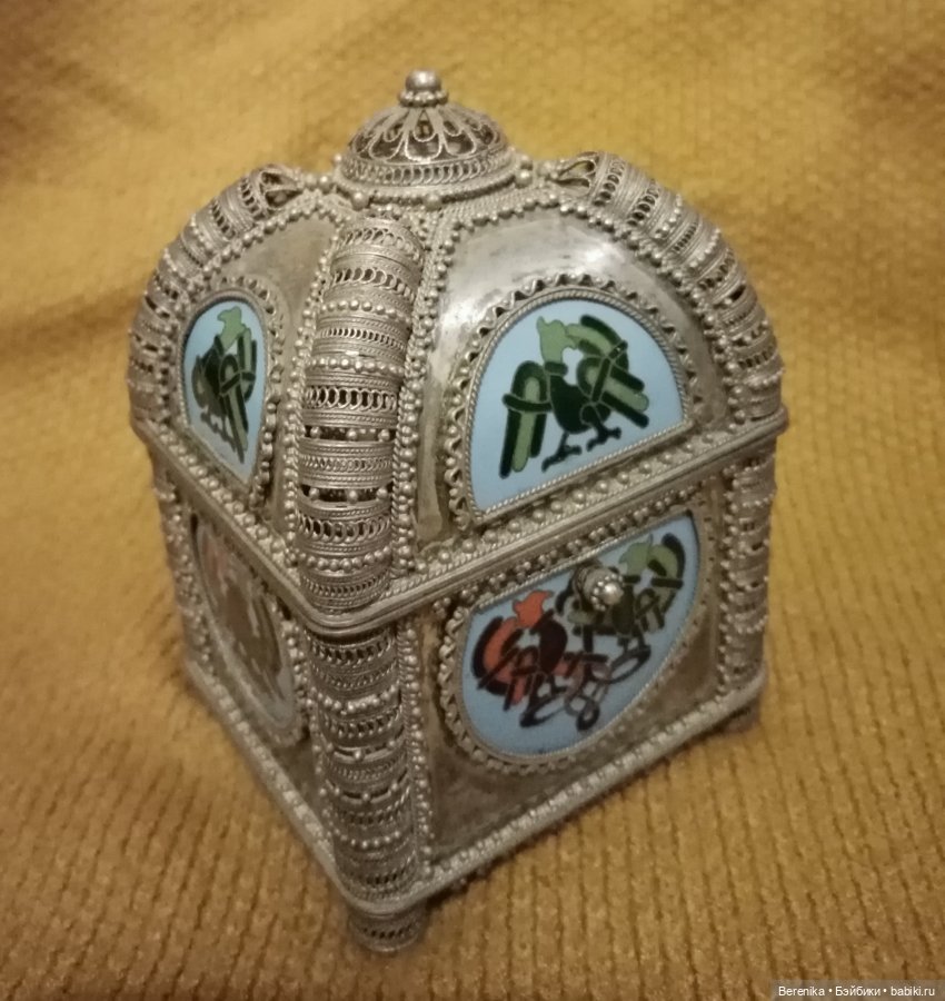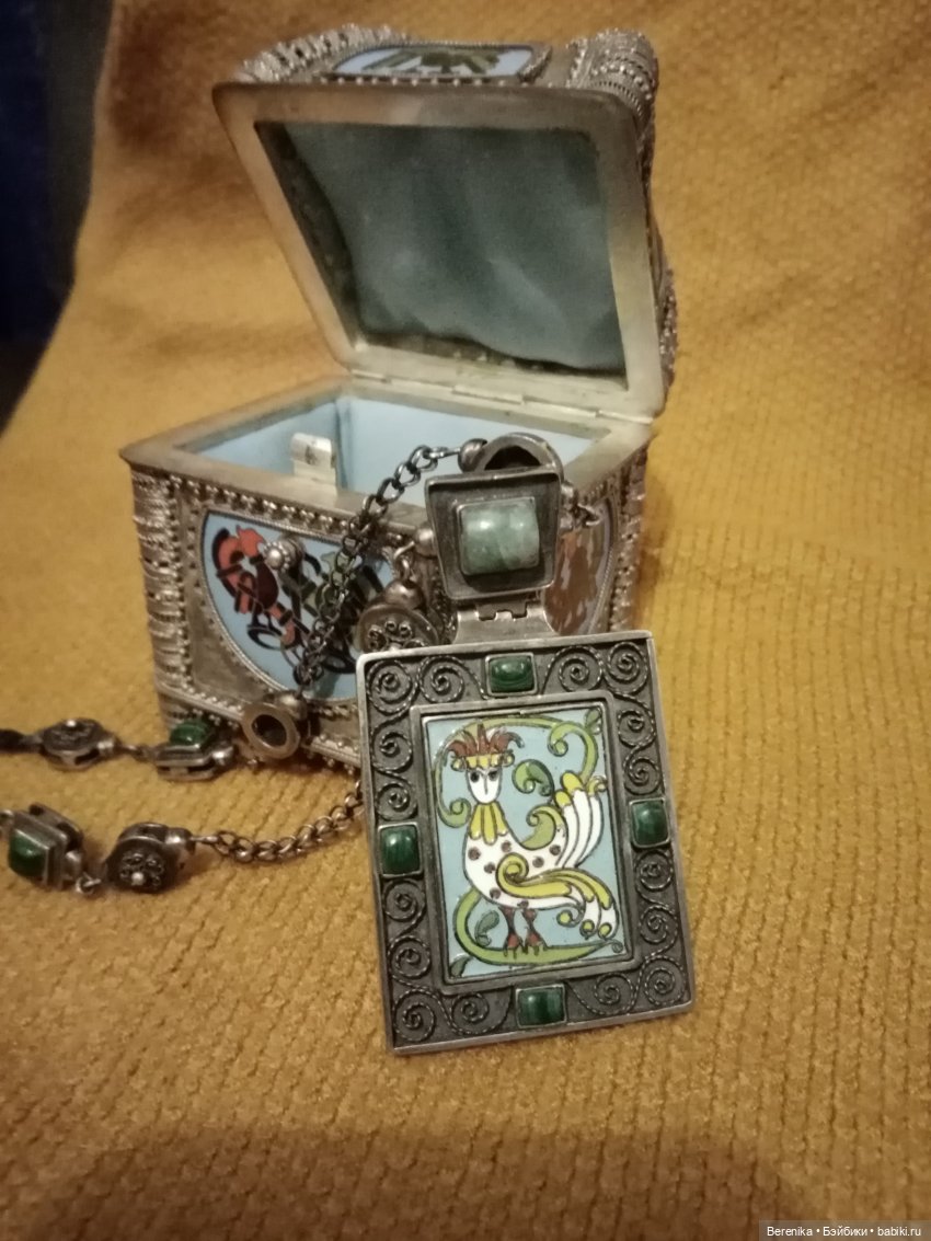 Не удержалась, покажу свои покупки. Купила, конечно, у любимых КУХОМцев (Красносельское училище художественной обработки металлов) Ларчик их их музея. Был выполнен на получение разряда в 1990 м году. В нем все, практически, мои любимые русские ювелирные ремесла. Зернь, скань, перегородчатая эмаль. И серебрянное колье с птицей Сирин, обожаю этот персонаж русского фольклора. Тоже из музея. Короче, подарки себе, любимой, на Новый год сделаны с размахом))