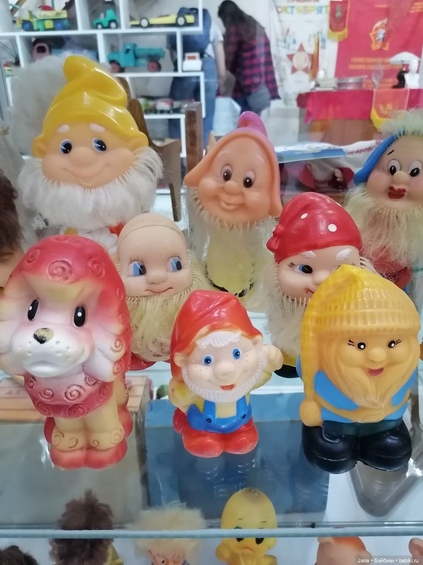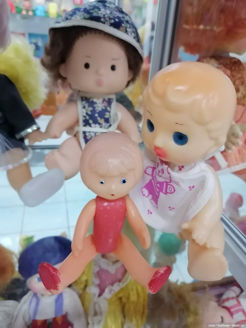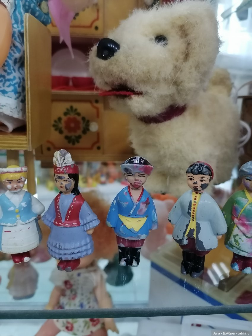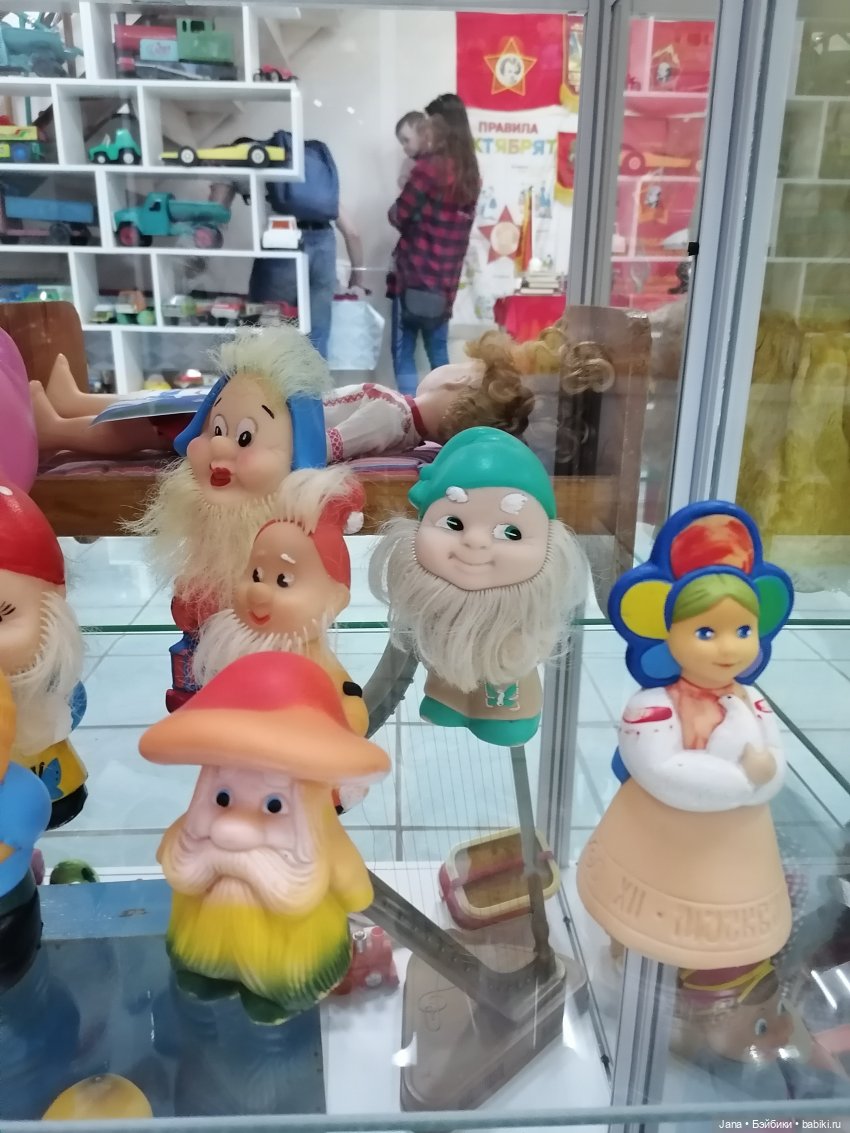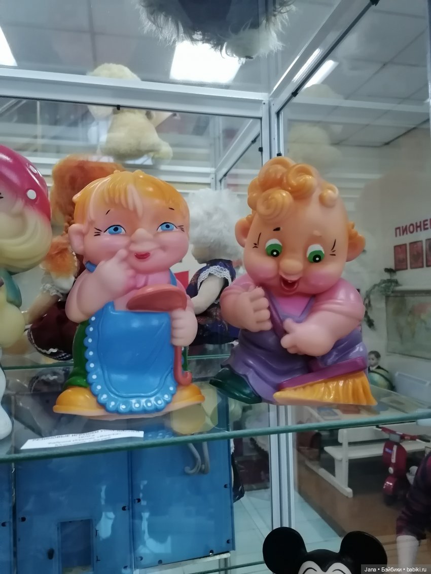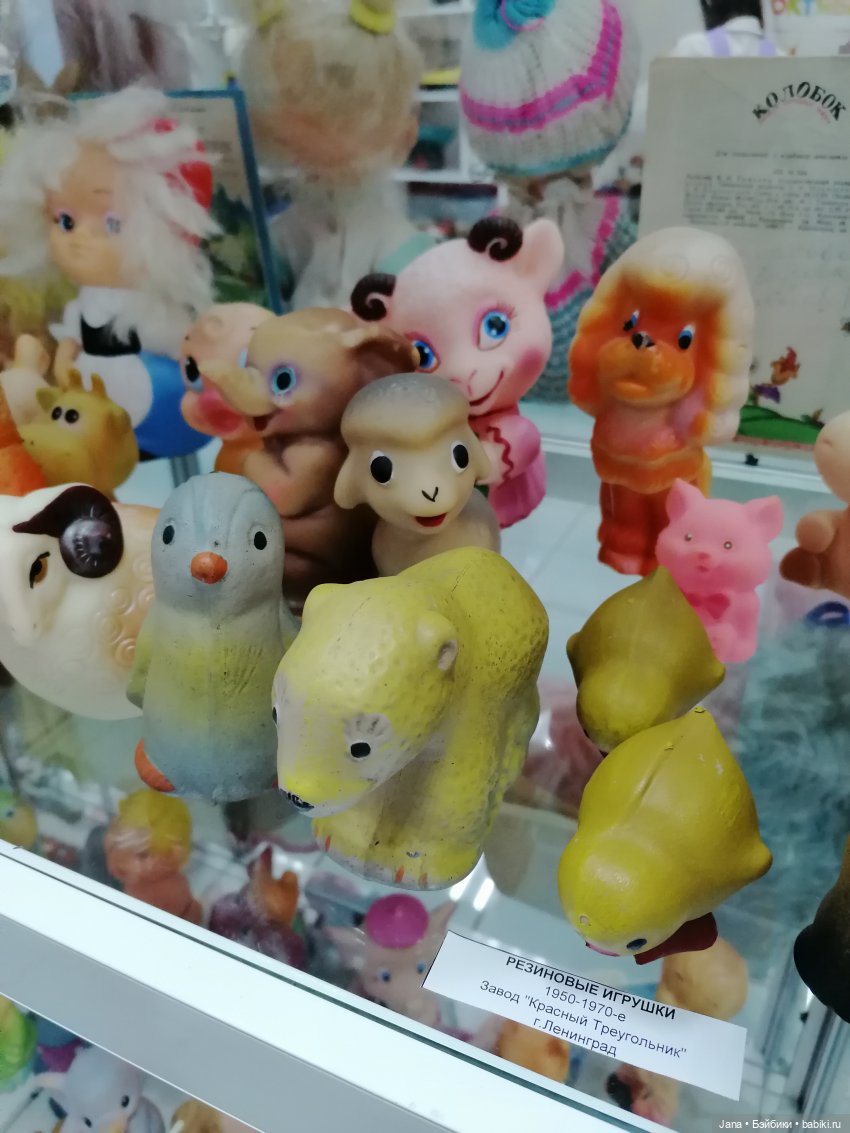 Кошмарная резина 90х, дутыши 80х вторичных фабрик, куклы тоже тех же годов. Некоторые игрушки в состоянии не для выставки — облупились, дружба народов например, или выгорели, несколько больших полиэтиленовых в ужасном состоянии, как с мусорки. Они не редкие и дешевые, можно было получше найти. Куклы лохматые.