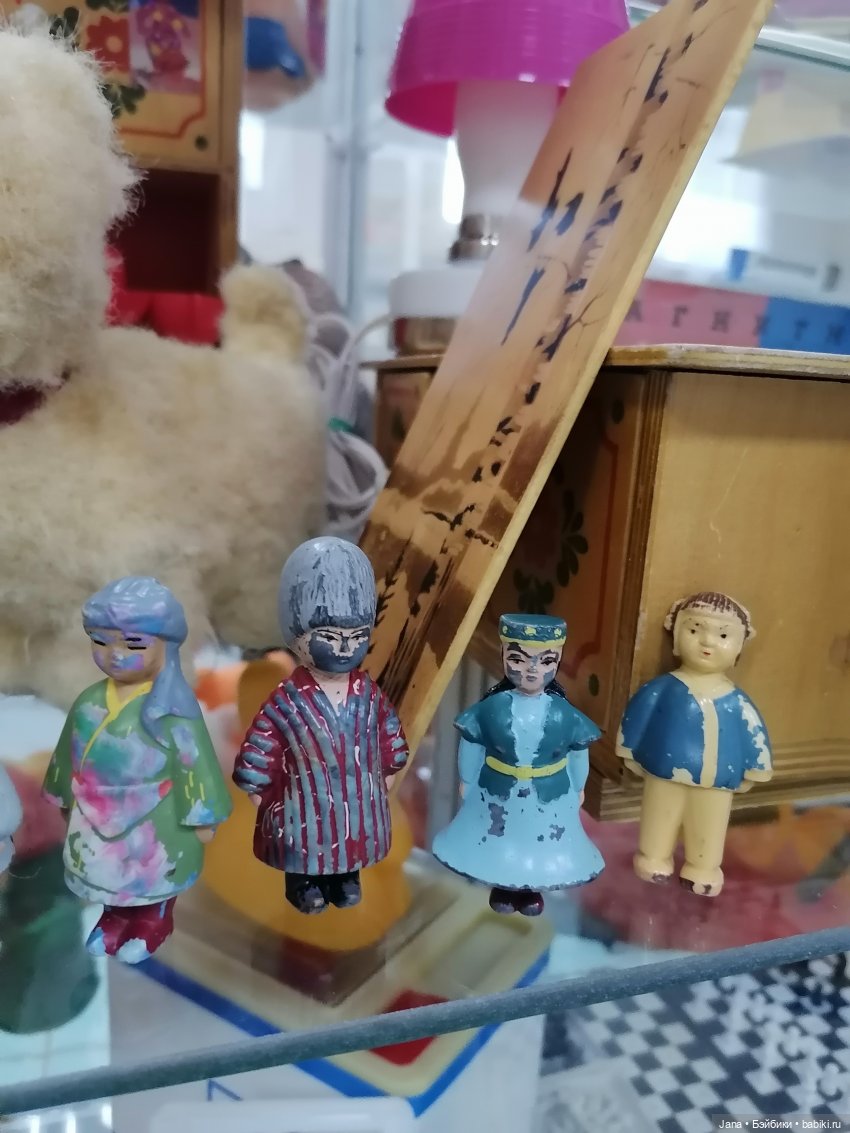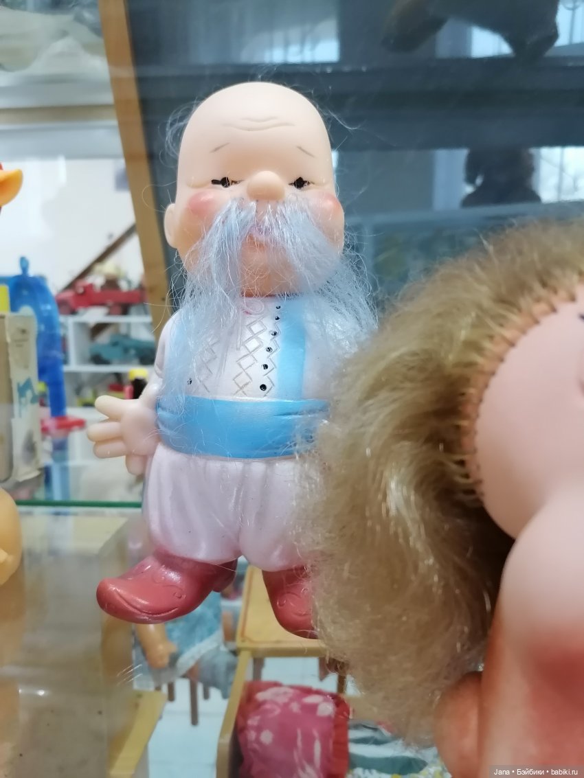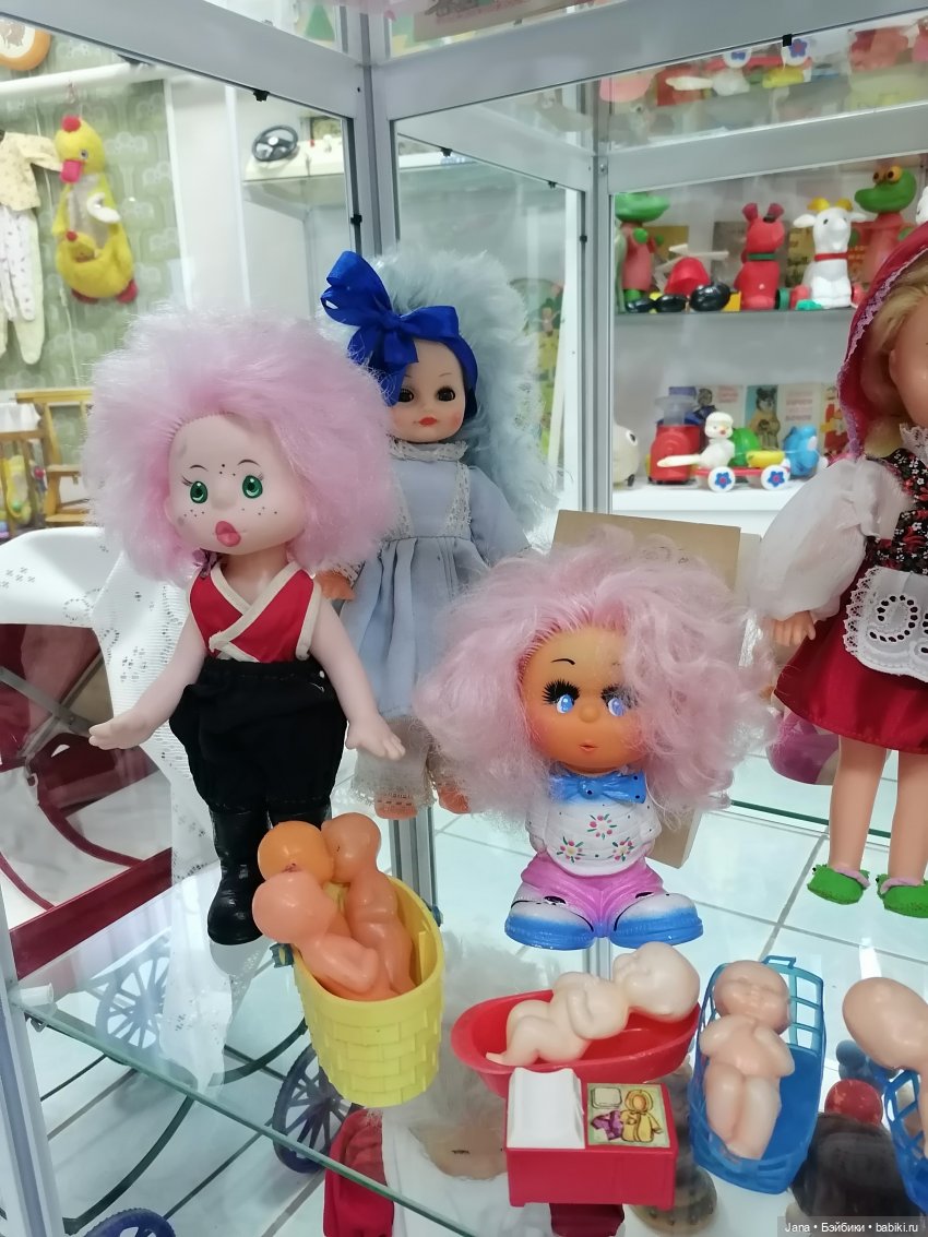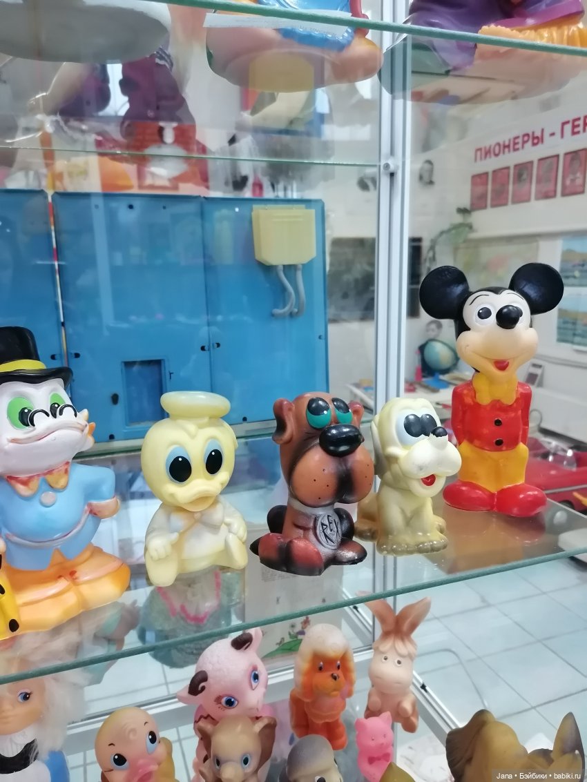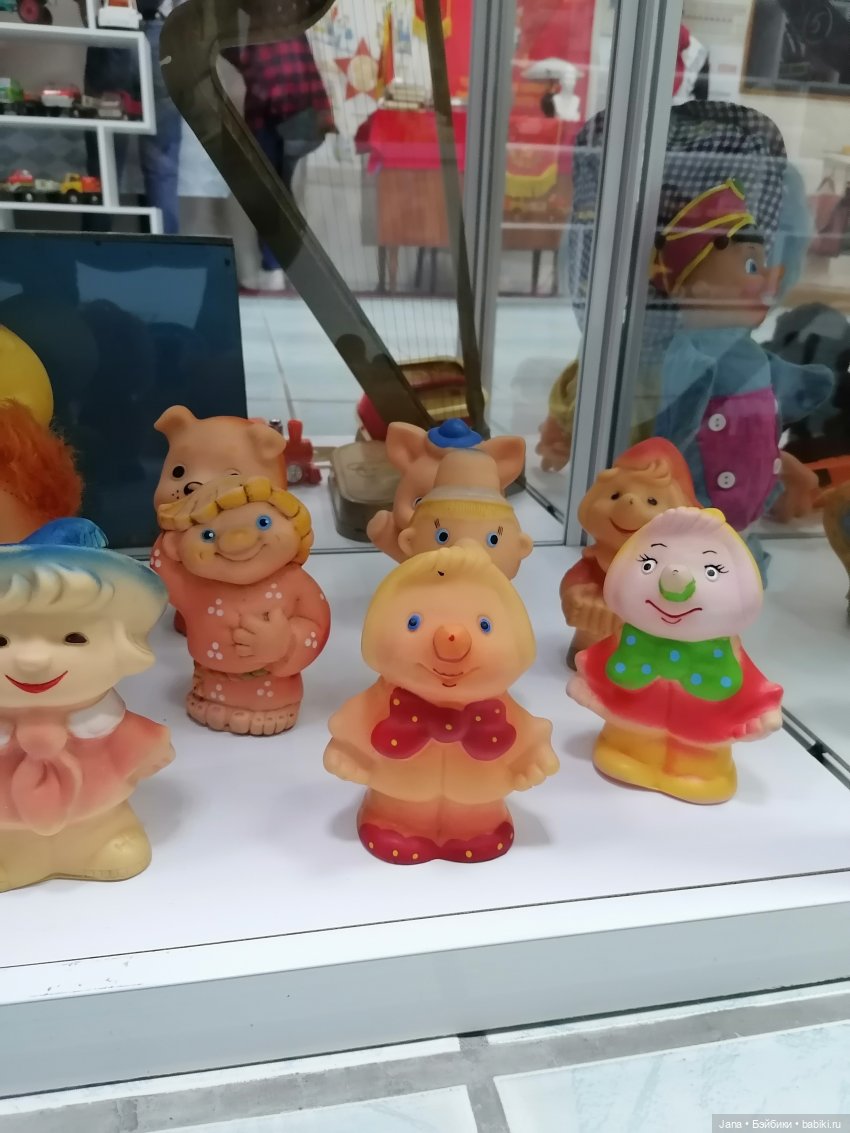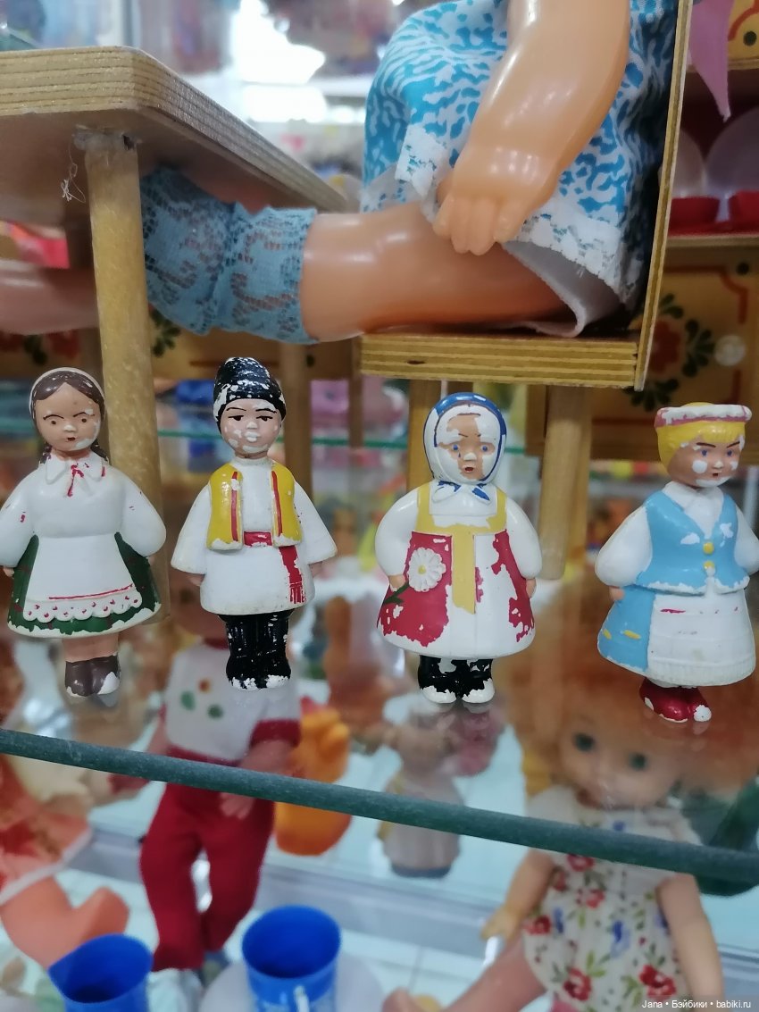 Кошмарная резина 90х, дутыши 80х вторичных фабрик, куклы тоже тех же годов. Некоторые игрушки в состоянии не для выставки — облупились, дружба народов например, или выгорели, несколько больших полиэтиленовых в ужасном состоянии, как с мусорки. Они не редкие и дешевые, можно было получше найти. Куклы лохматые.