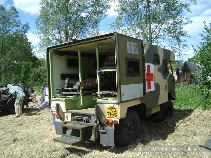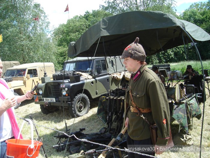 А вот около этого газика стоял такой вкусный аромат жаренного бекона.Товарищи кушали, все чашки, кружки старого военного образца.