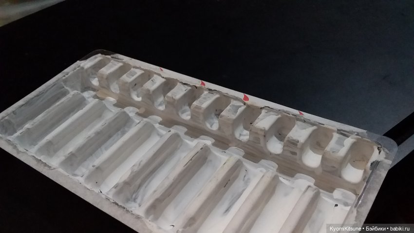 … А вот и палочки промокли, а пробирочки высохли. Режем палочки по линиям, ждем высыхания.