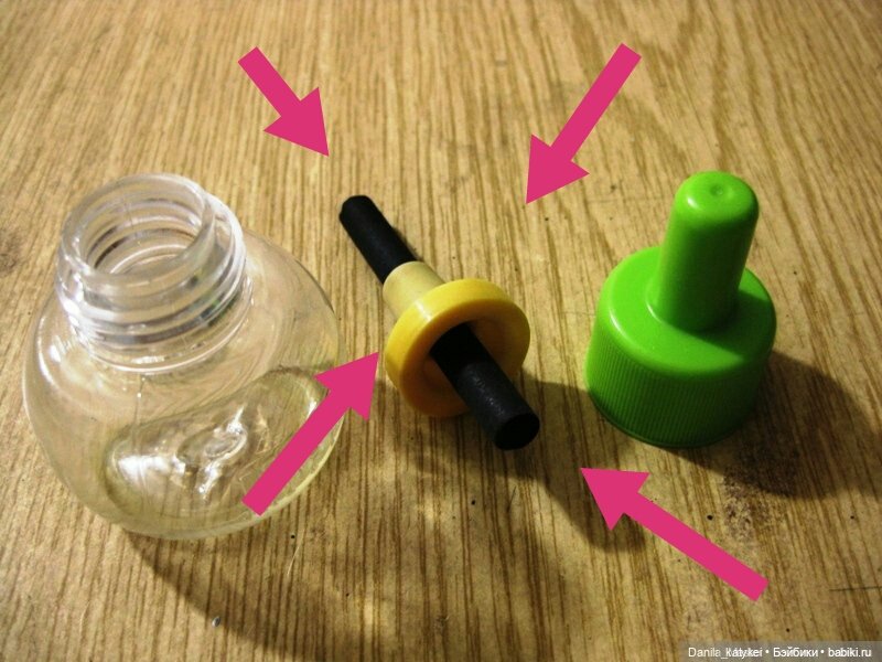Думаю, не стоит упоминать, что перед работой пустую баночку для жидкости от комаров и все её части надо тщательно помыть. Это и так понятно. Ну, уже упомянул)))