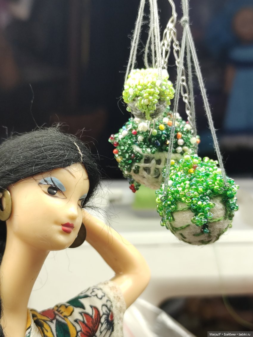 • искусственные цветы/бумага/сухоцветы/ткань, бусины (а кактусы разные бывают)/пластика (в общем, что найдется) — цветы