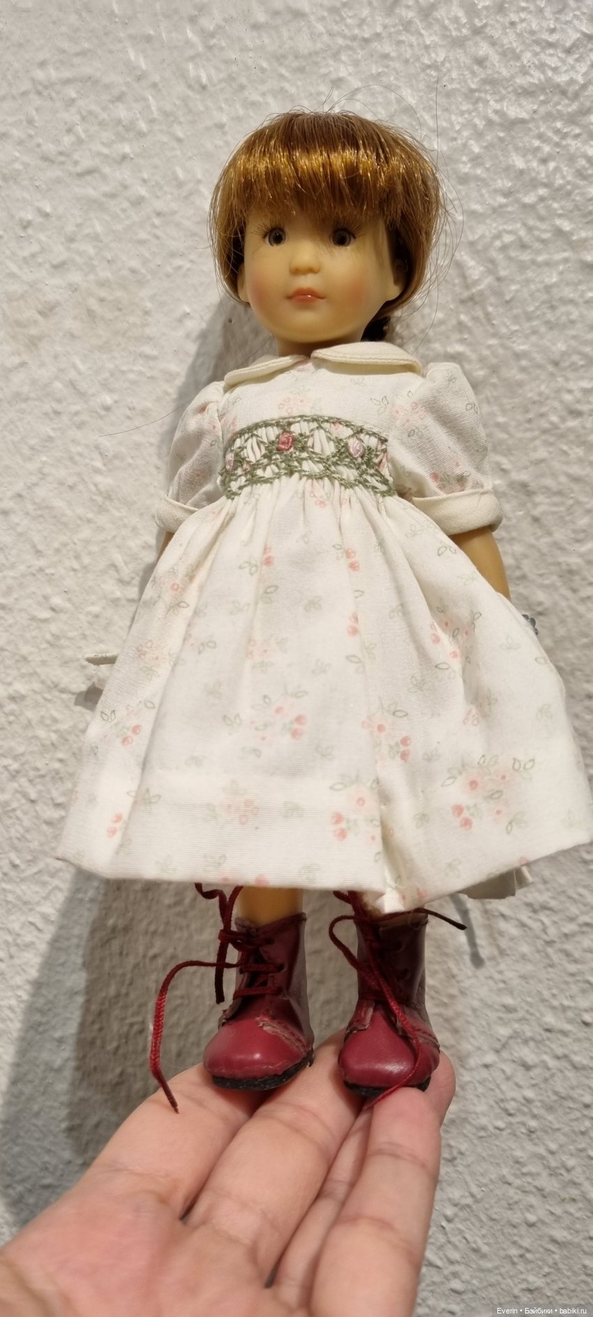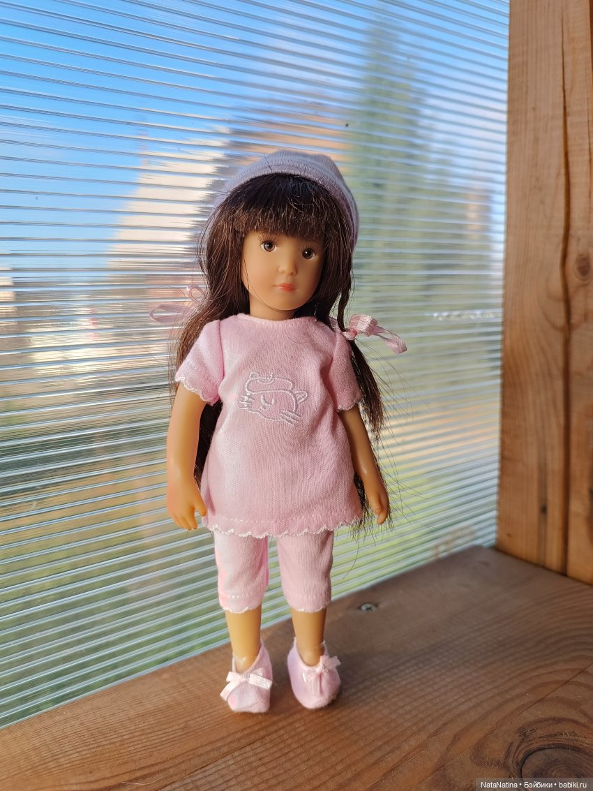 Мне у моей парик тож не понравился. Он у нее еще как то набекрень был, челка съехала. Волос жесткий. Я мохеровый паричок надела от другой куколки и уже гораздо лучше смотрится.