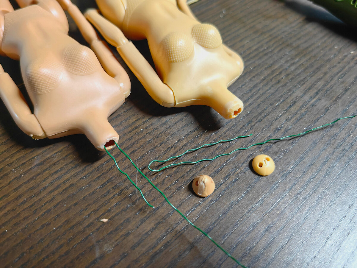 Надеваем головы и проверяем подвижность. Если что-то пошло не так, то всегда модно снять голову, перемотать проволоку посильнее или ослабить наоборот и снова проверить шейный шарнир.
