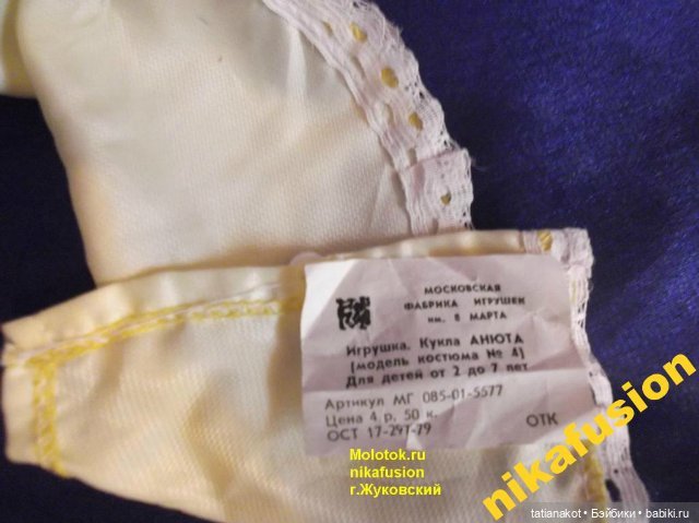 Женя продавалась в красном комбинезончике — он сохранился. При продаже проверяли паспорт на факт наличия детей. Такое правило ввели в нашем магазине, чтоб кукол не скупали спекулянты. У меня было две дочки и я смогла купить две куклы: одну своим, другую — племяннице