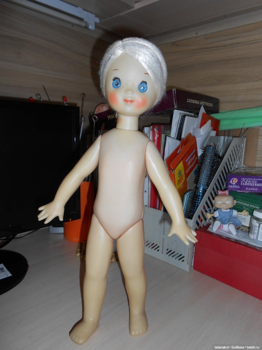Лиза была, как я сейчас понимаю, в идеальном состоянии, только грязная и выцветшая. Ее личико даже мокрое на банке мне очень симпатично. А после мытья -красотка