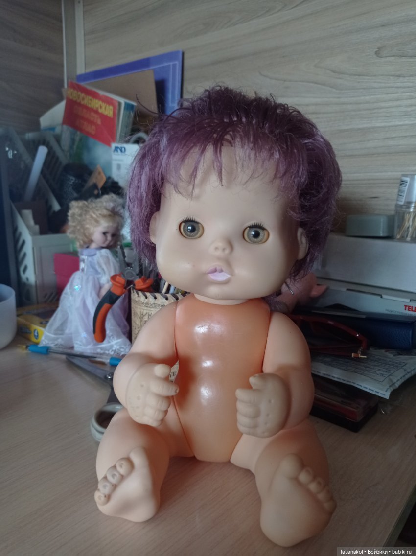 Эта малышка пока без одежды, недавнее приобретение. Кроме Ирины/Танюшки бывают еще с мягким телом Ляля, мальчик с рельефными волосами. И много разных аксессуаров.