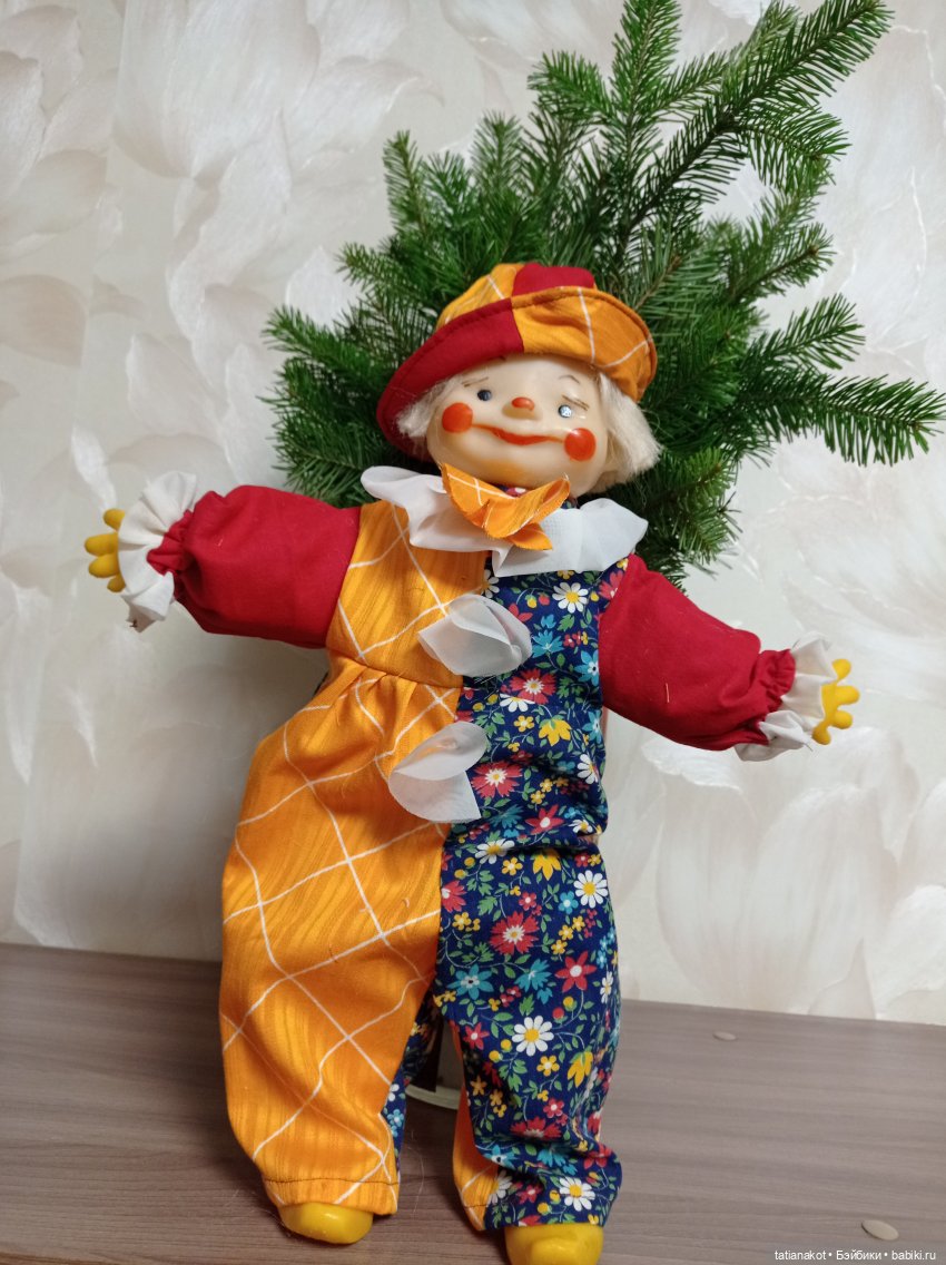 Клоун со слоником, весь наряд моей работы из винтажных тканей.
