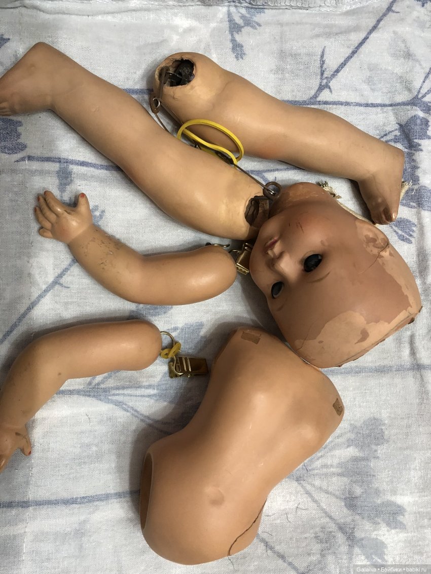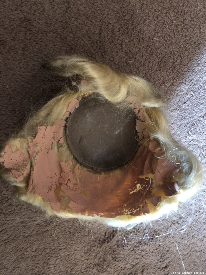 Обломанный пальчик легко восстанавливается. Лицо очень хорошо сохранилось. Снимете паричок, и можно будет глаза поправить.