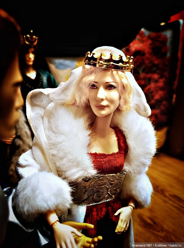 6) Фаворитка младшего принца в средневековом платье змеиной расцветки, которое показывает её скользкий и неприятный характер, ведь она согласилась на план Джессики.