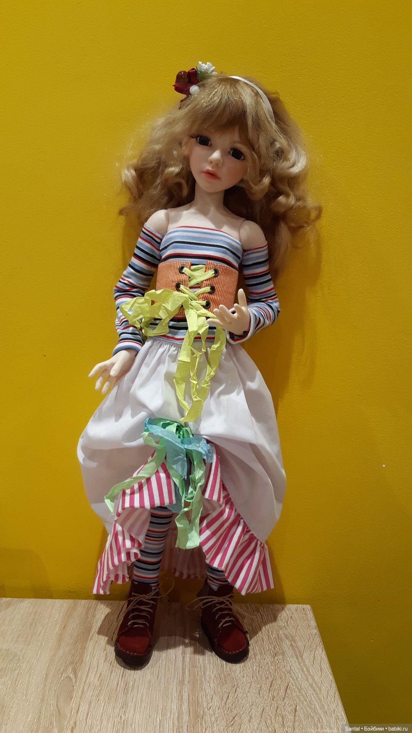 Впервые кукол Долстаун я увидела в работах Вассабики. «Это просто живая девочка!» — подумалось мне. Потом наблюдала за Мартой Алены. Единственное, что с останавливало (кроме финансового вопроса) это размер. Мой любимый размер кукол это примерно от 33 до 36 см, и как играть с девочкой ростом 46 см, пока себе слабо представляю. А меньше кукол я не находила. Тело девочки действительно очень пластично и принимает любые позы. Скульп лиц очень завораживает, ими хочется любоваться. Изначально я искала 7-летнее тело Доллстаун для гибридизации с Розой, но увидев ее, решила выкупить полностью. Мейк выполнен талантливым мастером Аленой Корде. Наряд изначально создавался на Розу Дольше olgaanikina , но по-моему подходит и Алине. За обувку спасибо suvor220677