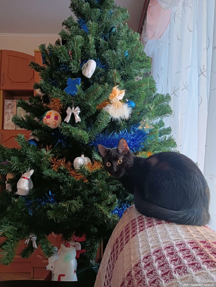Готовимся нарядить ёлку, Дымуся наблюдает за процессом.….