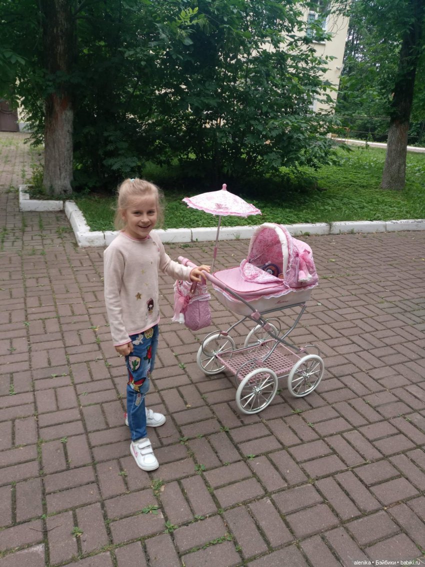 Мама говорит, что она была красного цвета (как и моя настоящая, в которой меня катали). Я её не помню. Но, став постарше и рассматривая фотографии, очень хотела такую же. Сколько раз мама привозила мне коляски из командировки, но они были гораздо меньше.