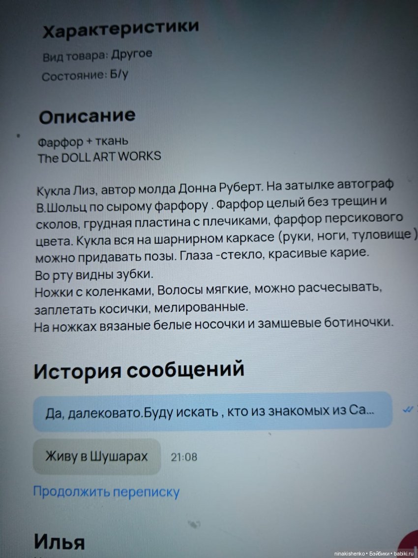 Если прочтете, в проданных куклах, объявление Нины, то оно почти дословно повторяется на Авито.