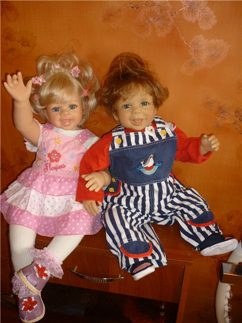 Честно говоря, когда я его увидела — у меня первое желание возникло — убрать его обратно в коробку… Дело в том, что хотя с Кики у них похожи глаза, волосы, выражение лица, и Флошка такой же мягенький и нежный, цвет лица у Флошки очень сильно отличался от Кикиного, на ее фоне, он кажется сдишком смуглым и желтоватым...:((( Но у него такая обаятельная и добрая улыбка, что я не смогла его засунуть обратно в коробку...:))) К тому же призванный в эксперты сын заявил: «Нормальный пацан!!!»