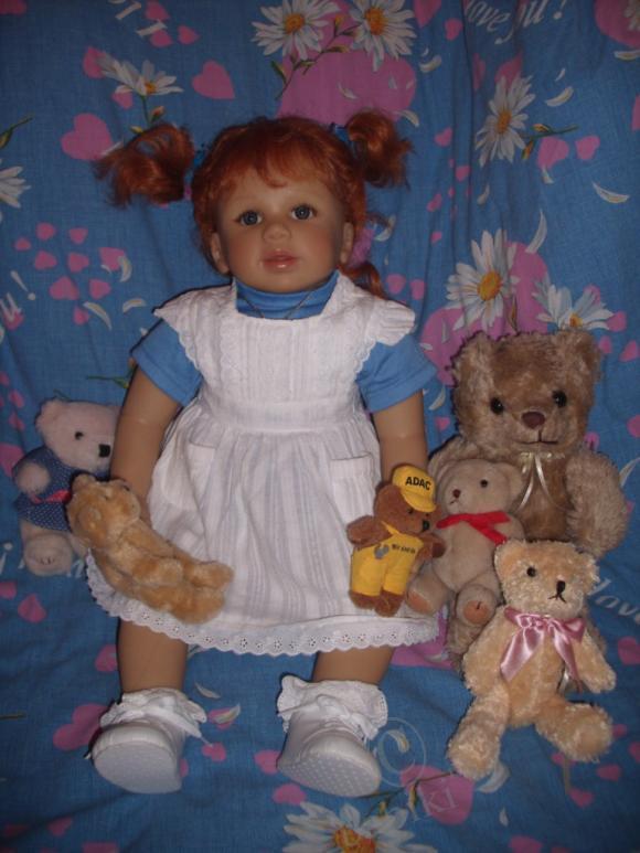 Лола, как ты быстро нашила, здорово, и фотки классные, так ей идёт. Я заметила что Каролин идёт голубой цвет. Я хочу показать свою Ангелику, она мне так нравиться, как настоящий ребёнок. Я вообще давно влюбилась в Куклы от Дорис Штанат. У них такой блеск в глазах.