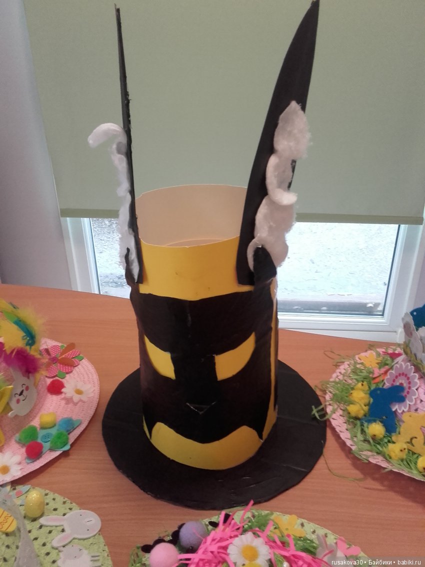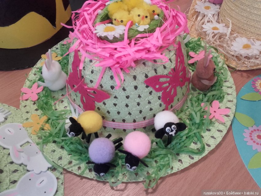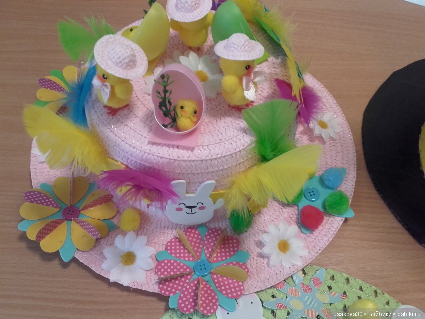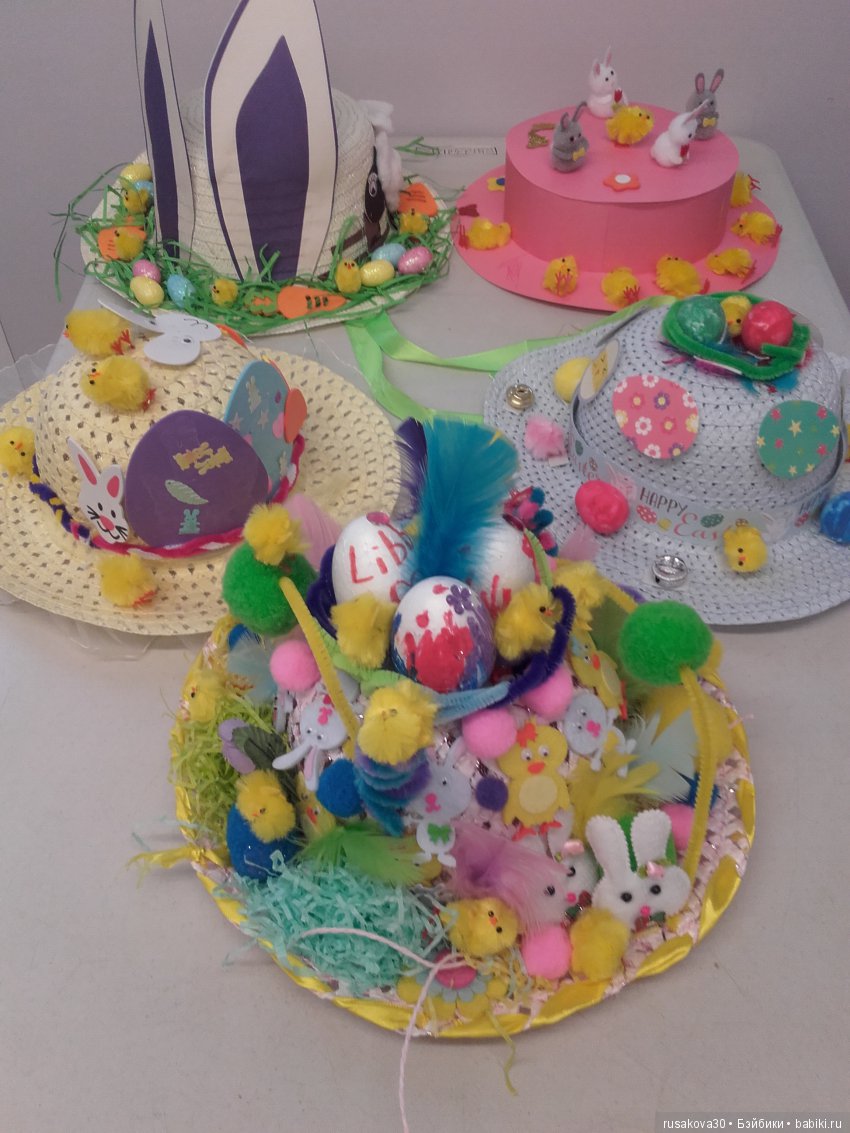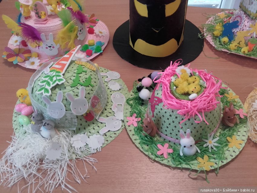 Начали оформлять в садике, а потом ребятишки забрали шляпки домой и закончили их с родителями.