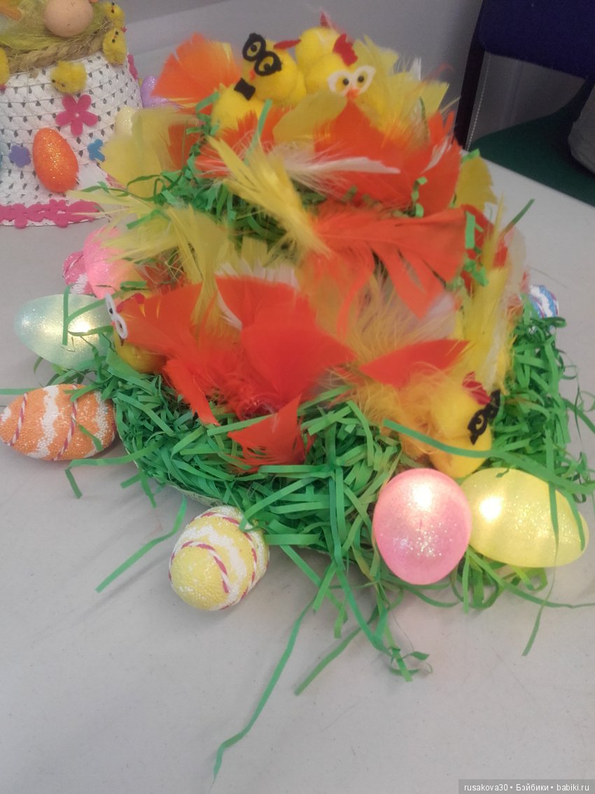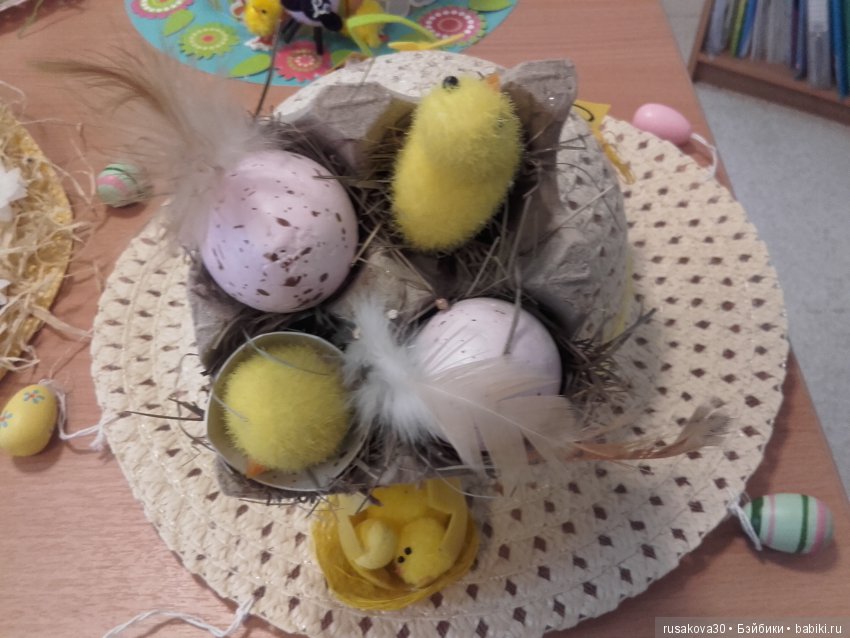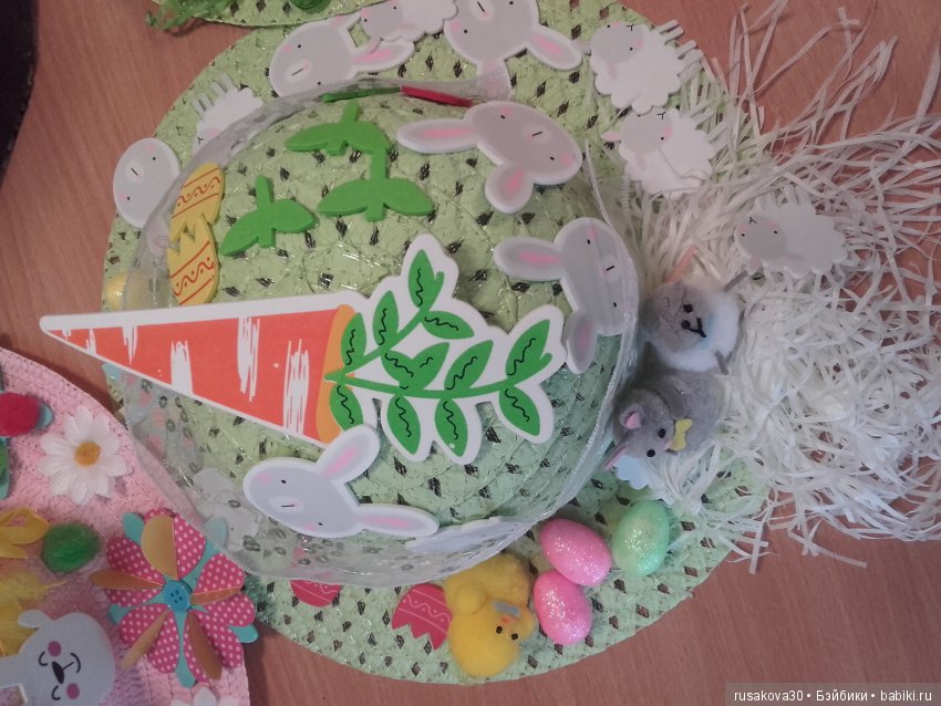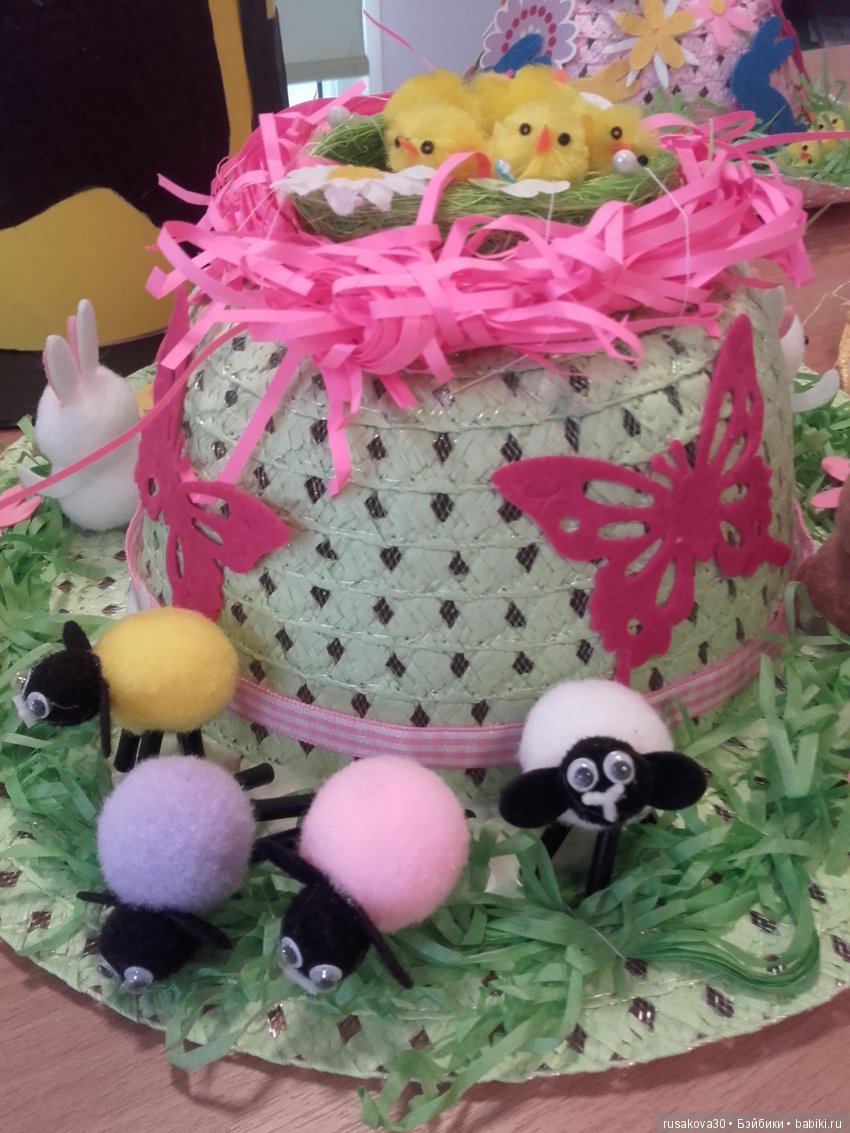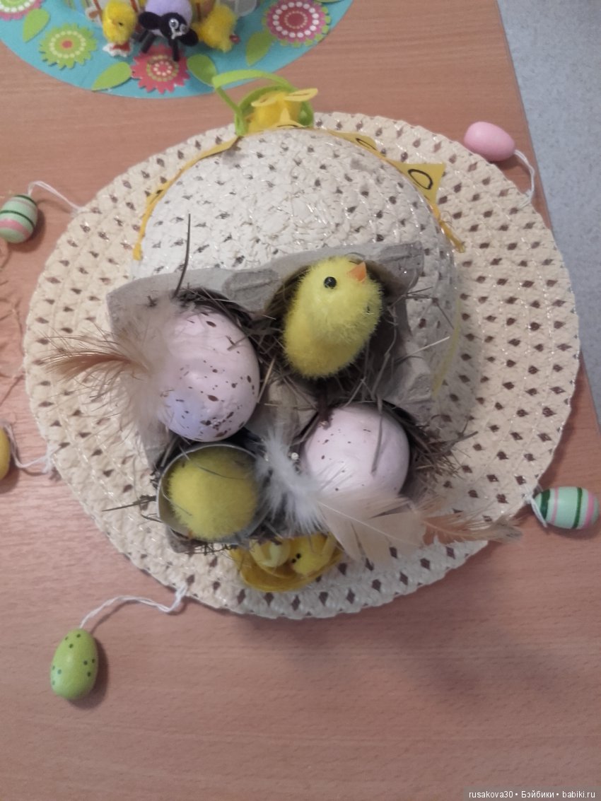 Начали оформлять в садике, а потом ребятишки забрали шляпки домой и закончили их с родителями.