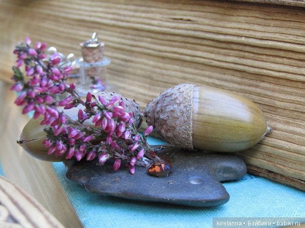 Порою очень хочется вазу чего-то съедобно-красивого, чтобы есть глазами. Тут вот жёлуди, настоящие и один стеклянный, живущий в кулоне: