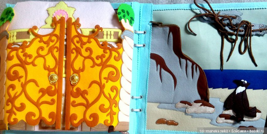 Размер странички 30*30см, включает в себя 17стр,2 из которых игра бродилка.