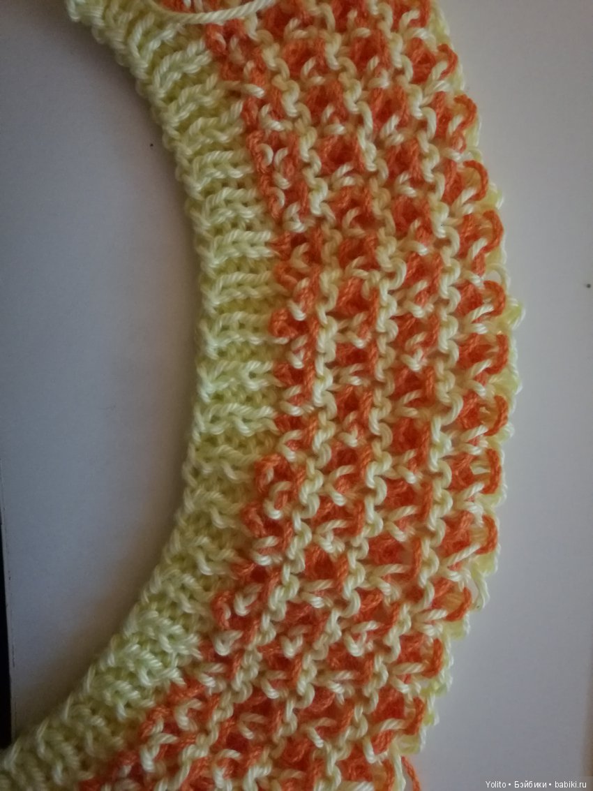 Ещё 7 ряд не понятен — написано по рисунку, по рисунку идёт все синие петли, а по уму просятся опять чередование снятых петель как во втором ряду(