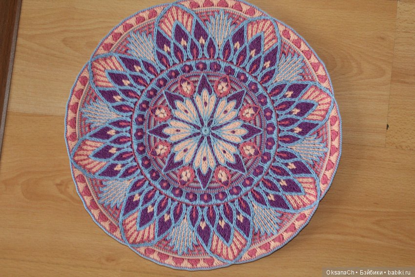 Итак, представлю вашему вниманию ковер. Связан из хлопковых тонких ниток. Размер 37 см. Название его Астра. Плотный, рельефный, не тощий.