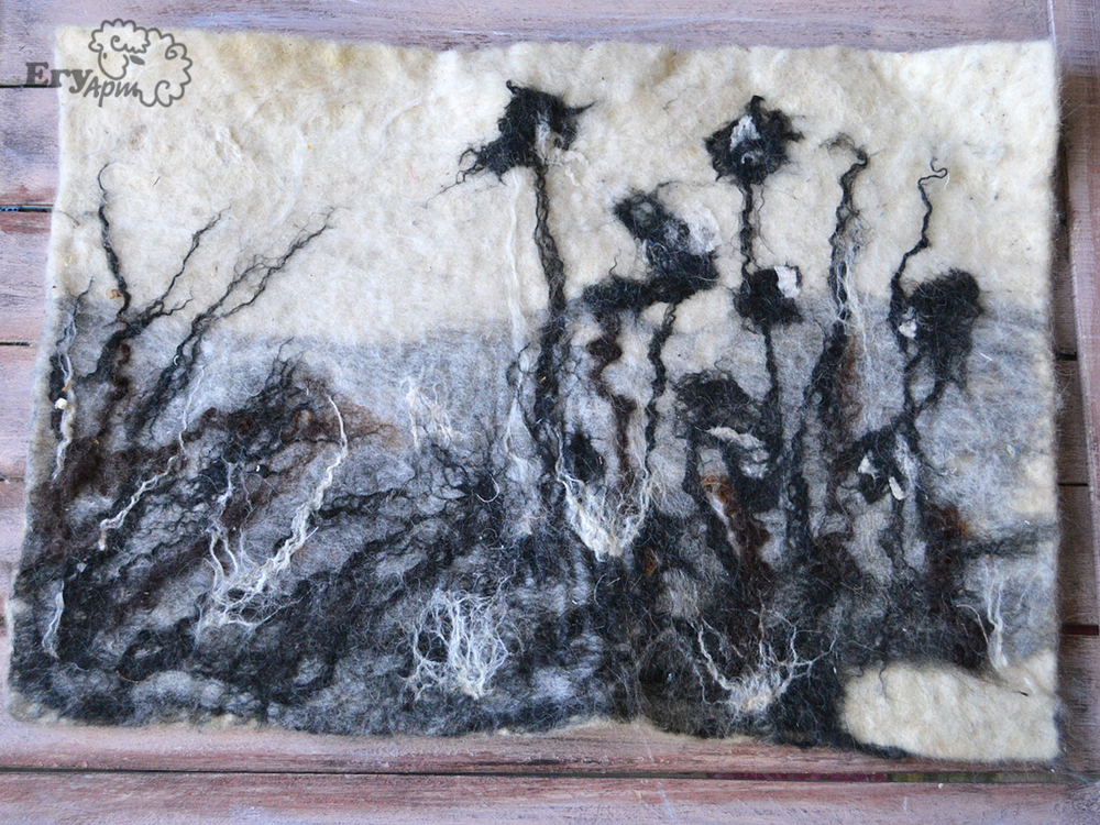 Вот так из ничего появляется что то, тут конечно меня понесло дальше и родились на свет еще несколько картин свалянных из шерсти