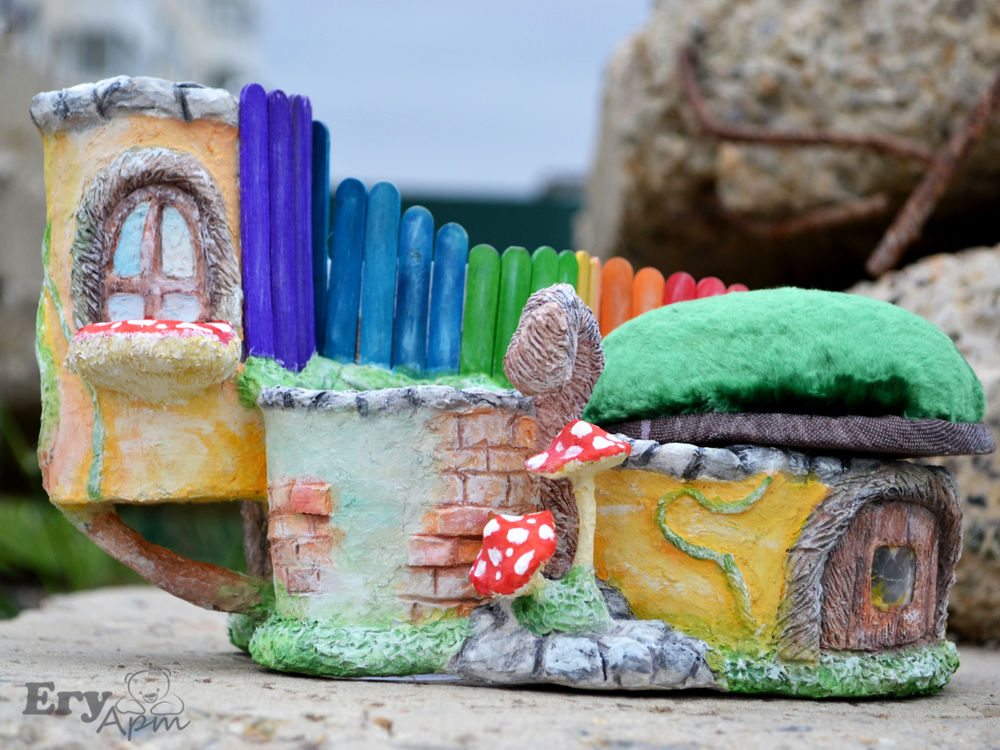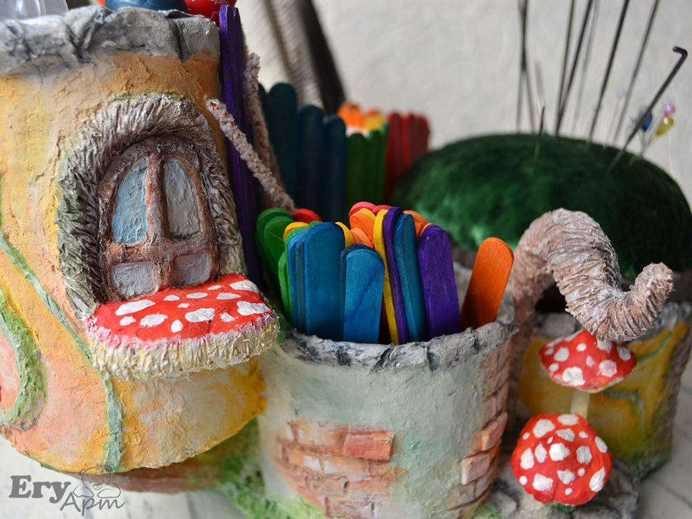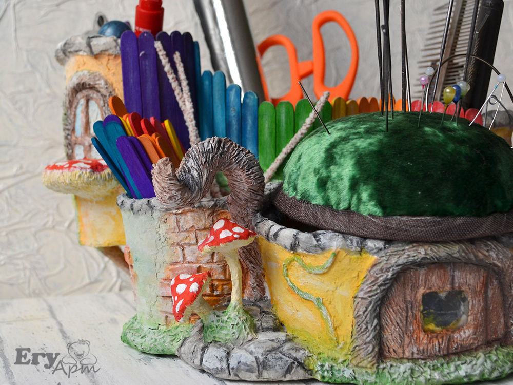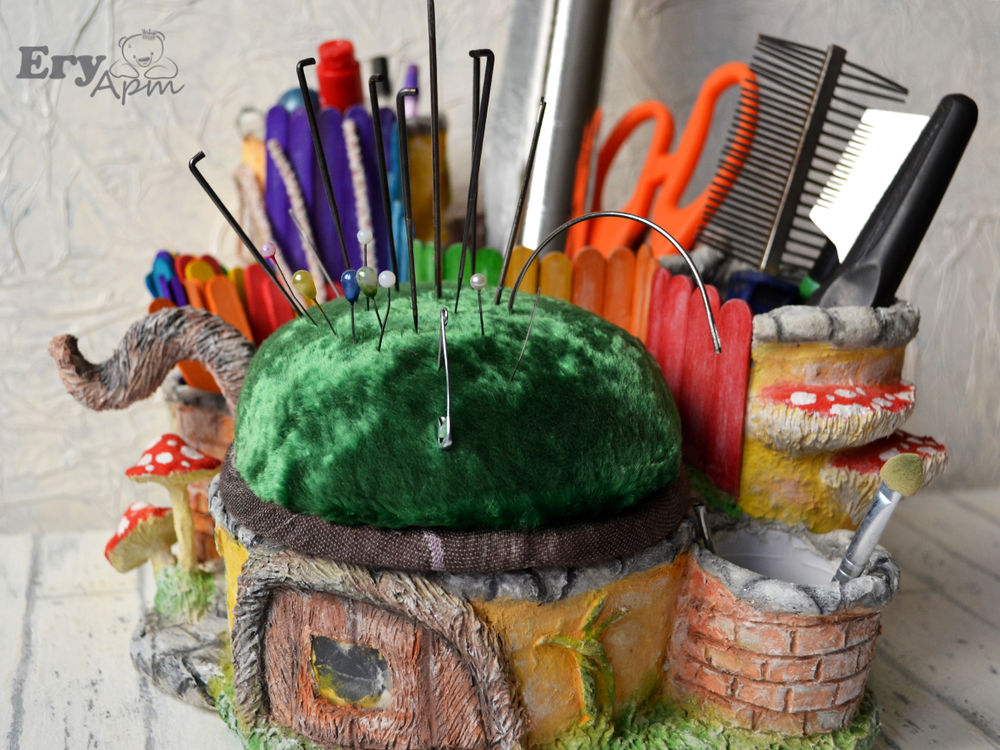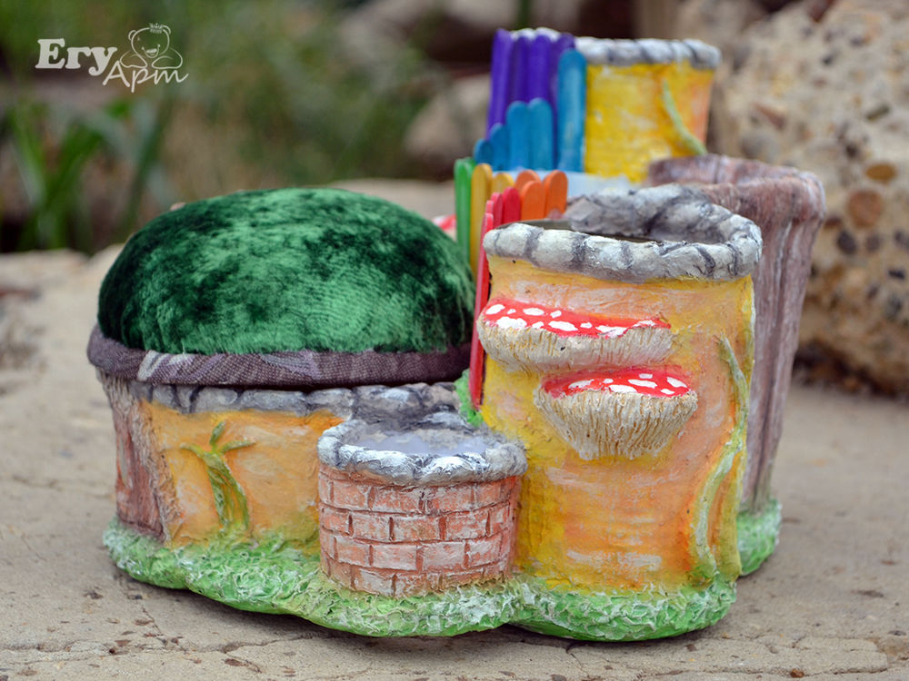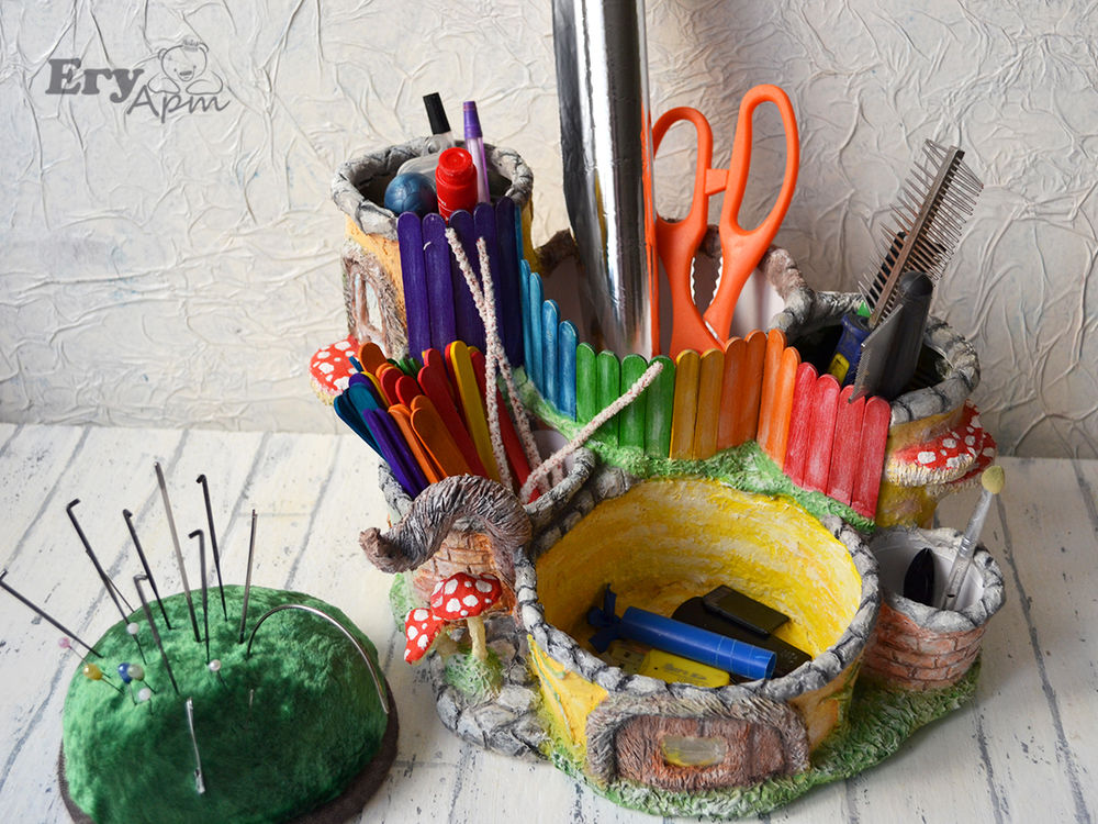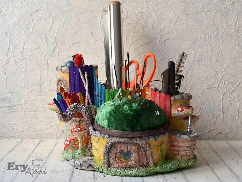 Привет друзья! Сегодня хочу показать органайзер в сказочном стиле. Этот пост — как идея, его не сложно сделать самостоятельно из подручных средств. Выложу фото с описанием и при желании можно сделать нечто подобное. Украсить стол ребенку, ну, или кукольнику, для творческого вдохновения. Итак поехали.
