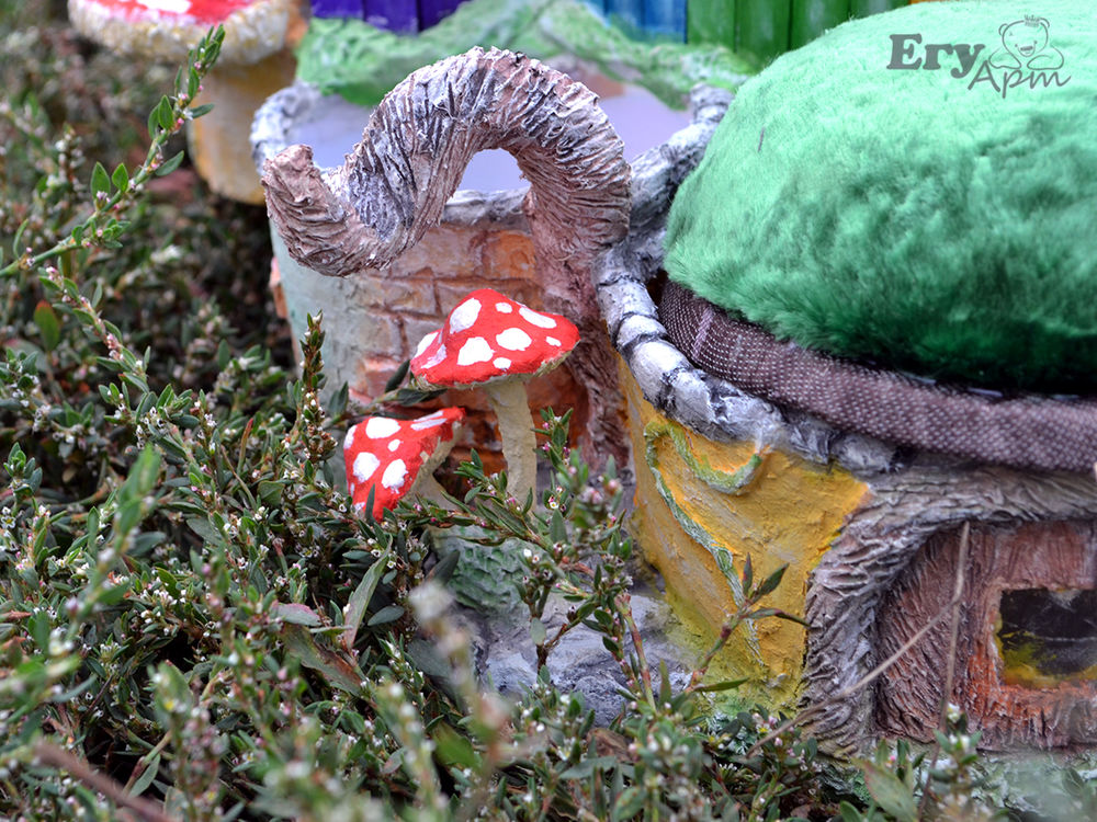 Грибочки декоративные, смотрятся мило на фоне травушки-муравушки. На коряжку повешу табличку какую-нибудь мотивирующую.