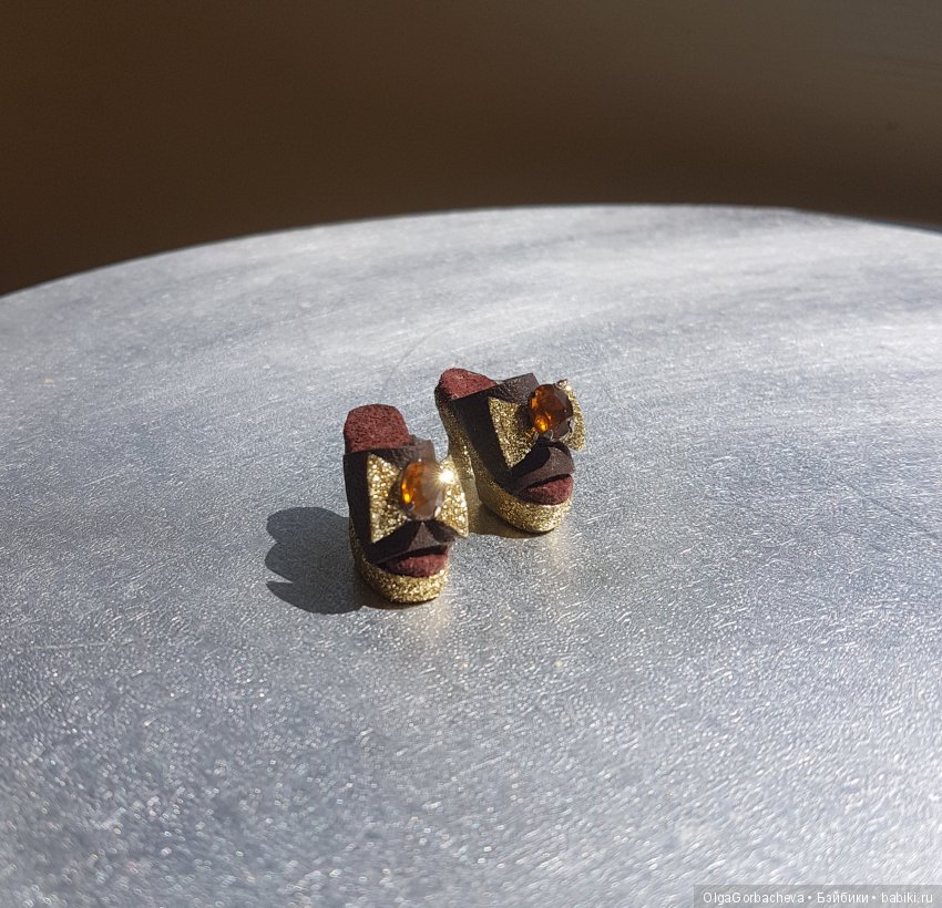О туфельках. Подошва – клееный картон, каблук – апельсиновая палочка. Все части собирала с помощью самозатвердевающейся глины, шлифовала машинкой для маникюра, стелька и верх – кожа на ПВА. Первый блин не оказался комом, (мне так кажется)но не думаю, что повторю этот эксперимент снова.