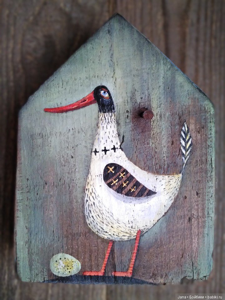 В последние выходные на даче настругались вот такие домики. Доска из сосны, краски акрил.
