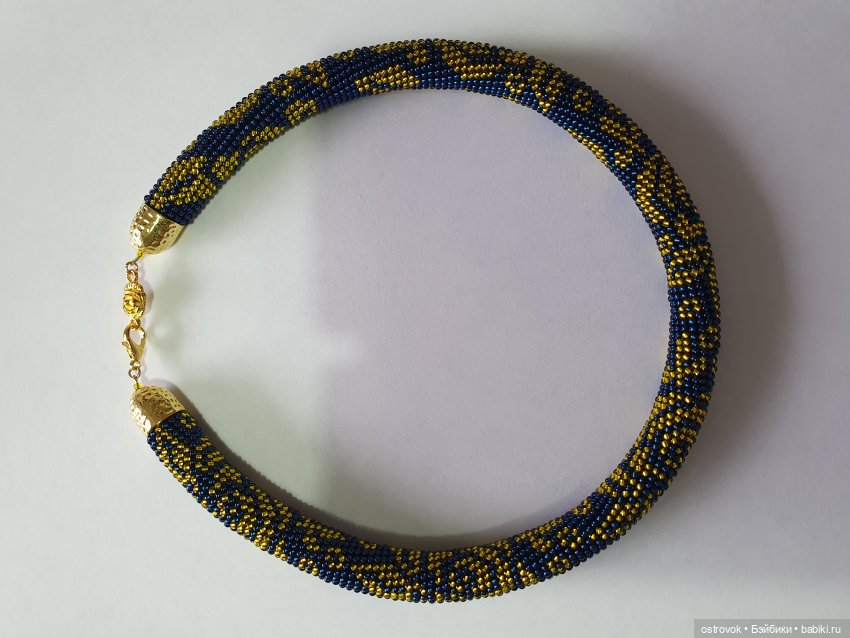 Связан этот шедевр на нитке Кружевница, использован чешский бисер 10/0 и японский бисер Toho 11/0. Застежка в виде головы и хвоста змейки, цвет золото.