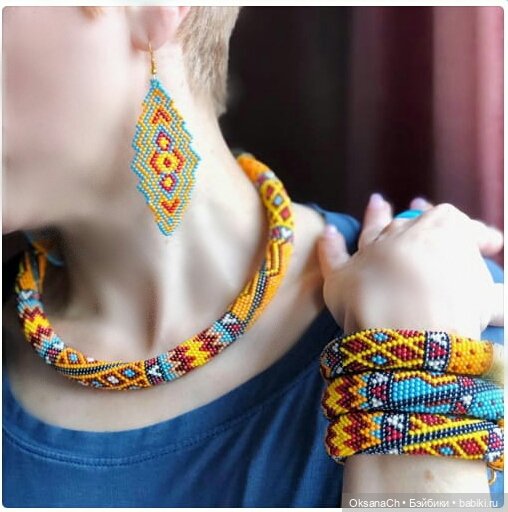 Сначала я думала, что это браслет. Потом внимательно прочитала, оказалось, что — колье. Оксана, сделайте пожалуйста фотку, как оно смотрится на человеке.