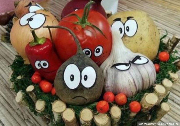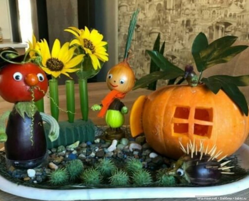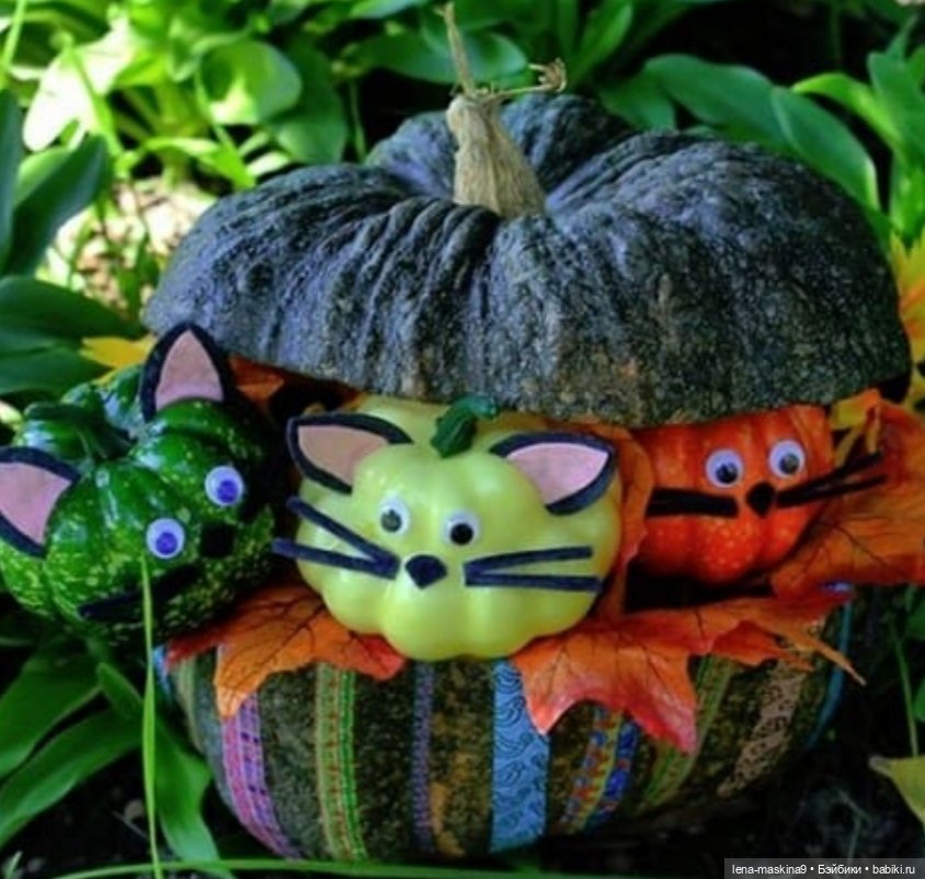 Поделки очень креативные! Но для меня лучшая поделка — запечённая тыква в духовке с мясом, рисом, овощами! Вот это самая вкусная и полезная поделка)))