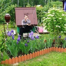 А это я его красила, вначале с краскопульта, а потом все полосочки отдельно, жалко, что каждый год приходится подкрашивать, этот цвет выгорает быстро.