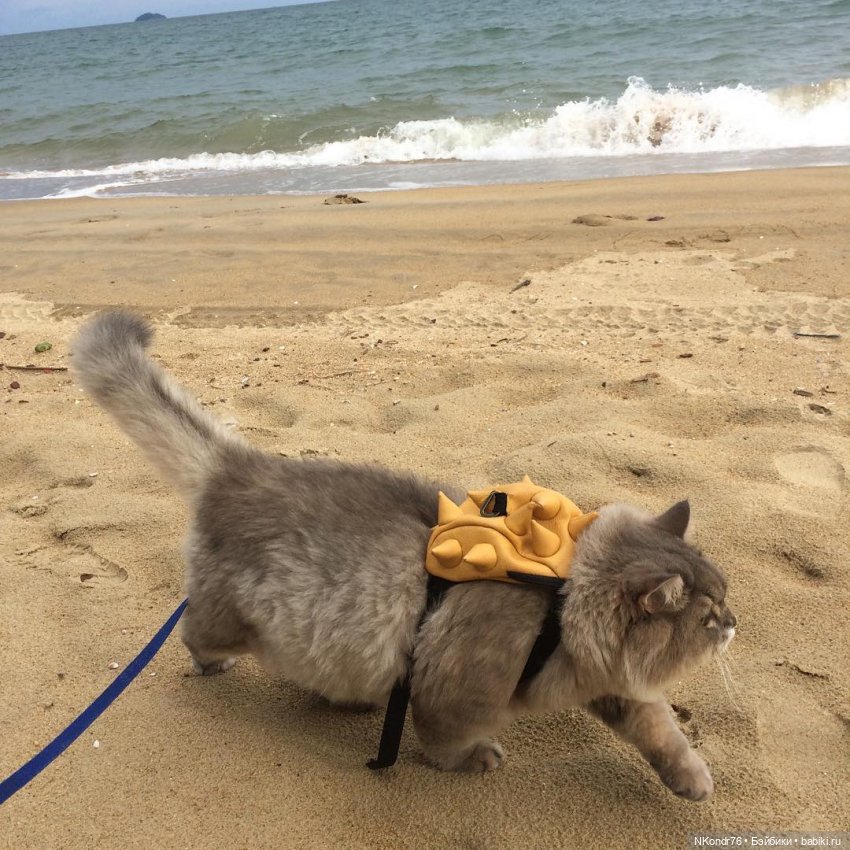Не хотела шить для прогулок шлейку из лент. Это же скучно для швеи. Пробовала жилет с креплением на спине. Не смогла толком сделать выкройку такую, чтобы кот не смог снять жилет. Поэтому решила сшить рюкзак с креплениями. Плюс (!) модные в то время фото толстенького кота Бон Бон из Тайланда с различными рюкзаками-шлейками. Они были такими милыми, а кот на фото такой спокойный, что мне казалось вполне реальным приучить своего кота к подобным вещам.