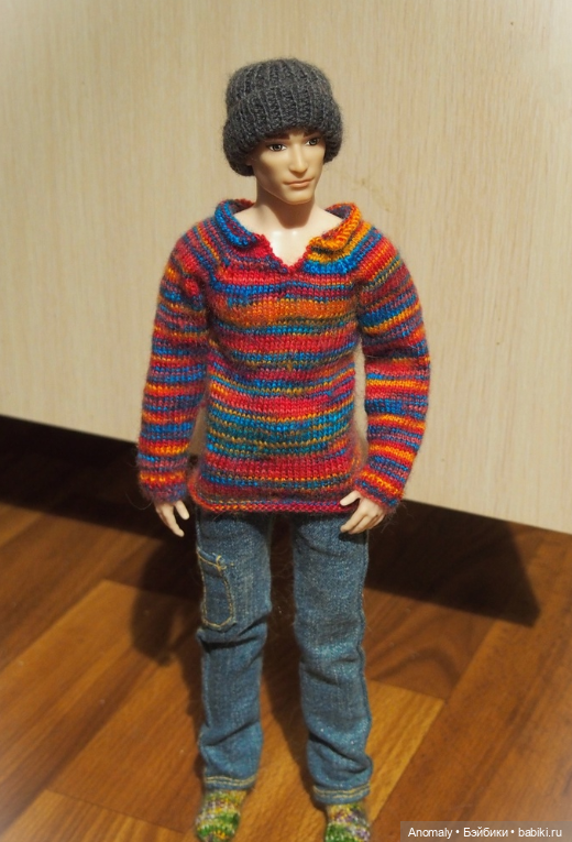 Но я её разделяю на несколько ниточек — раскручиваю, перематываю, получается тоненькая, подходящая даже для малявочек 16 см. Процесс не быстрый и муторный, но результат того стоит! Если раскрутить на одну ниточку, она местами очень слабенькая, разъезжается, как ватка, надо или дублировать катушечной ниткой или вязать аккуратно, не сильно натягивая, в готовом полотне уже всё хорошо, не разъедется. А в две ниточки вообще совершенно нормальная, крепкая, но для, например, барби изделия будут чуть толстоватыми.