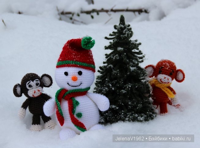Не успела опомниться как уже Новый год на носу, а дружбы с обезьянками у меня нет. Вот не нравятся мне они. Вроде и схем много да что-то не то. 26 декабря пришлось брать себя в руки и вязать! То не то, было уже не важно. Так были рождены обезьянки. В таком бешеном ритме я ещё ни разу не вязала!