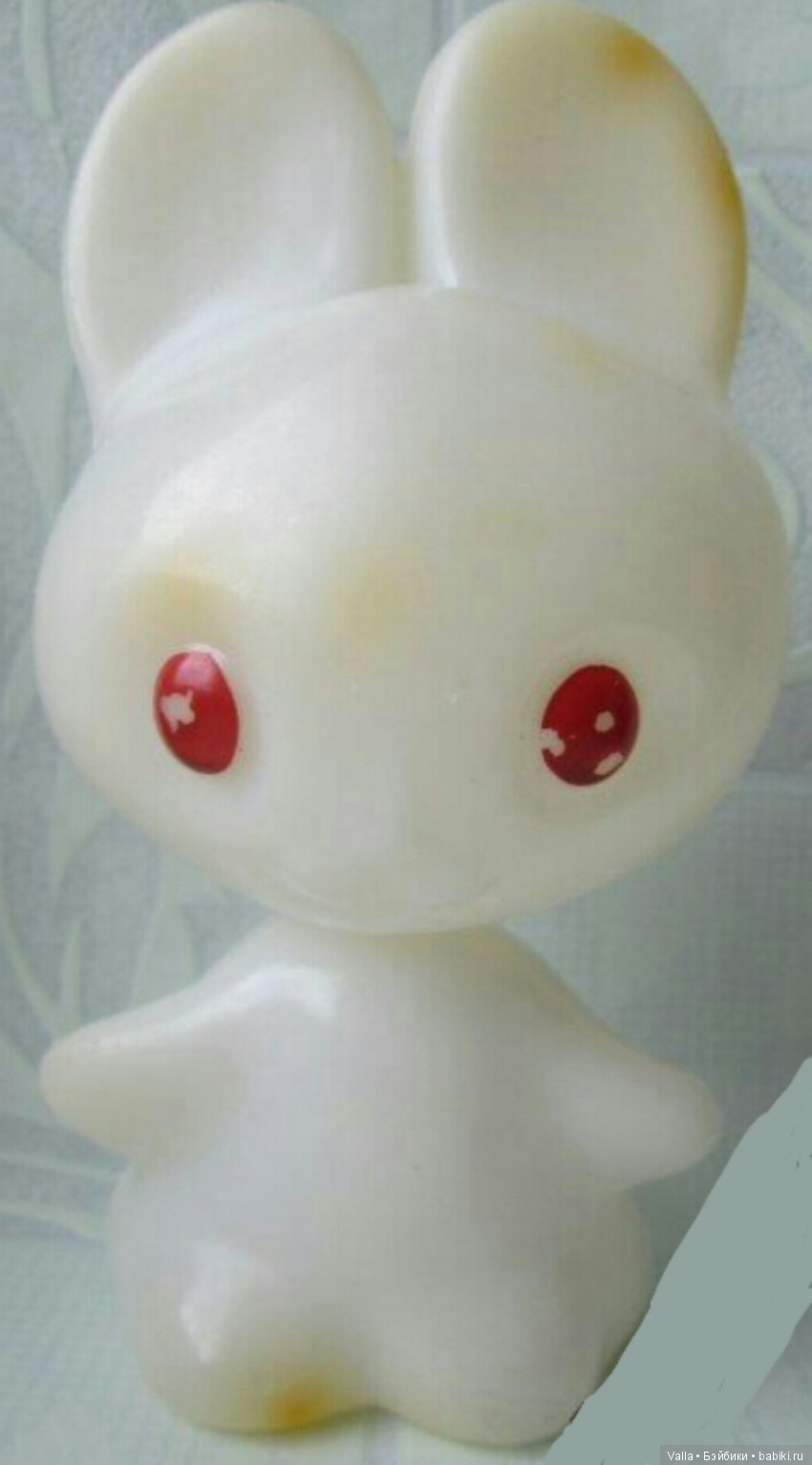 А, вообще, этот заяц мне очень напоминает флоковые игрушки, производства Таллинской фабрики, времен СССР. Они часто были именно такого цвета, да и дизайн похож. Что- то не могу получше картинки найти, ну вот: