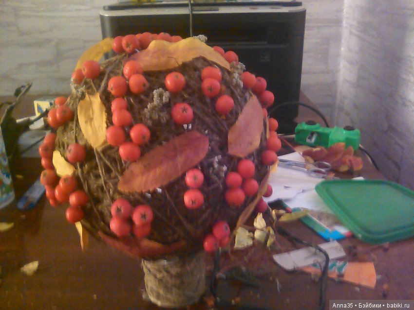 Добавочно к экстренно просушенным листьям взяла шар, бечевку и стаканчик.