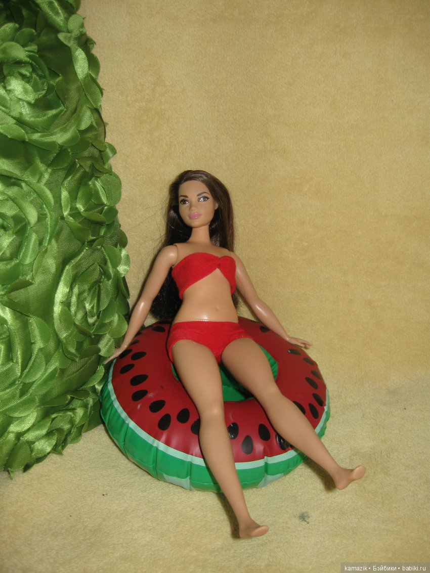 А Яна, не смотря на погоду примеряет разные купальники. К слову сказать — этот купальник из резинки для волос из фикс прайса.